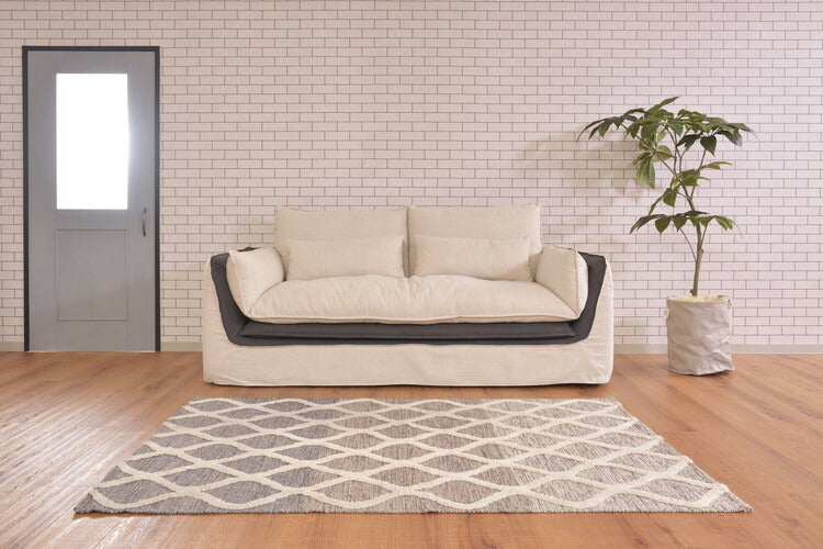 木フレーム Sバネ ウィービングベルト ポリエステル リネン ※クッション2個付