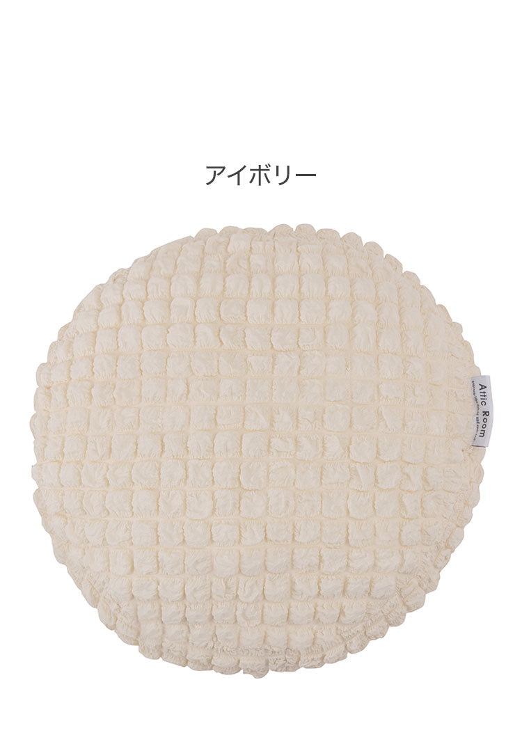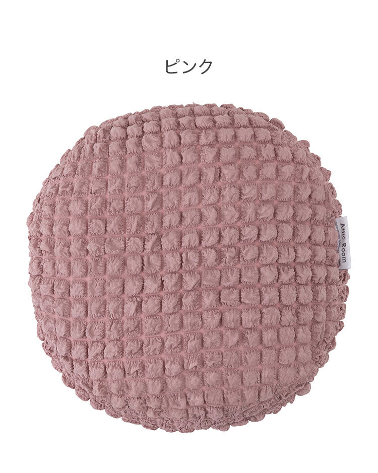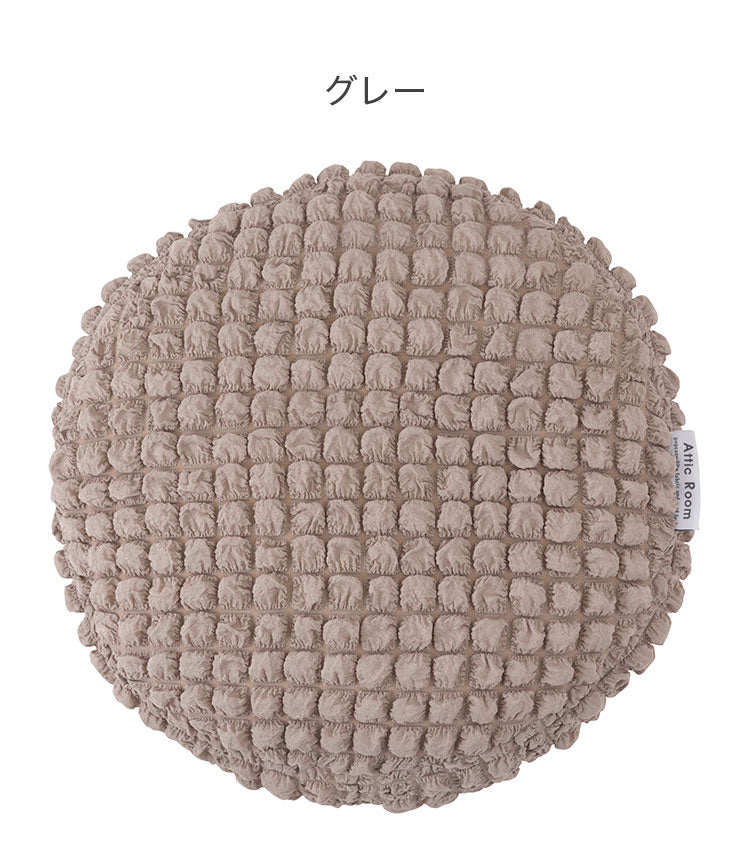 接触冷感 ポップコーン生地 アイボリー 白 白色 クッション かわいい おしゃれ 韓国インテリア 北欧風 北欧 もちもち 夏 ひんやり ニュアンスカラー くすみカラー ラウンド 丸型 丸 円形 直径38cm(代引不可)