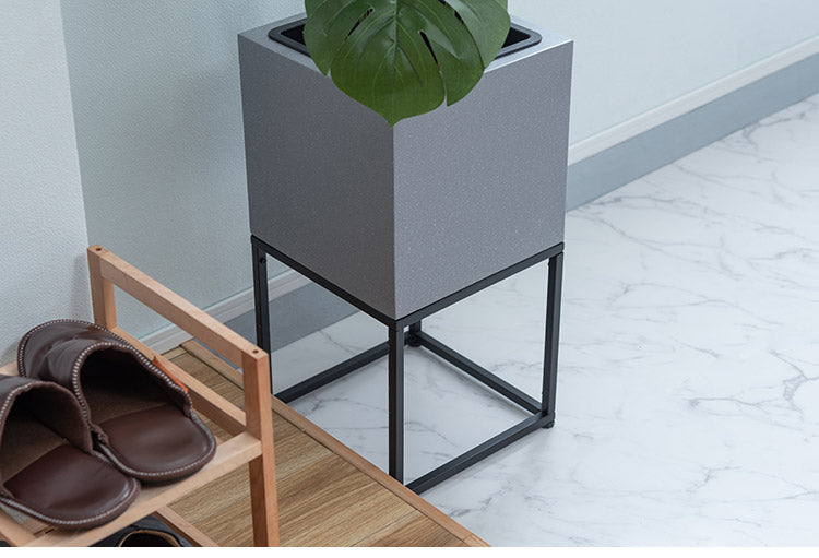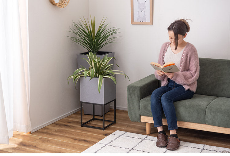 スタンド付き 正方形 6号用 プランター プランター 鉢入れ スタンド付き モダン インダストリアル シンプル グレー 植物 観葉植物 インテリア(代引不可)