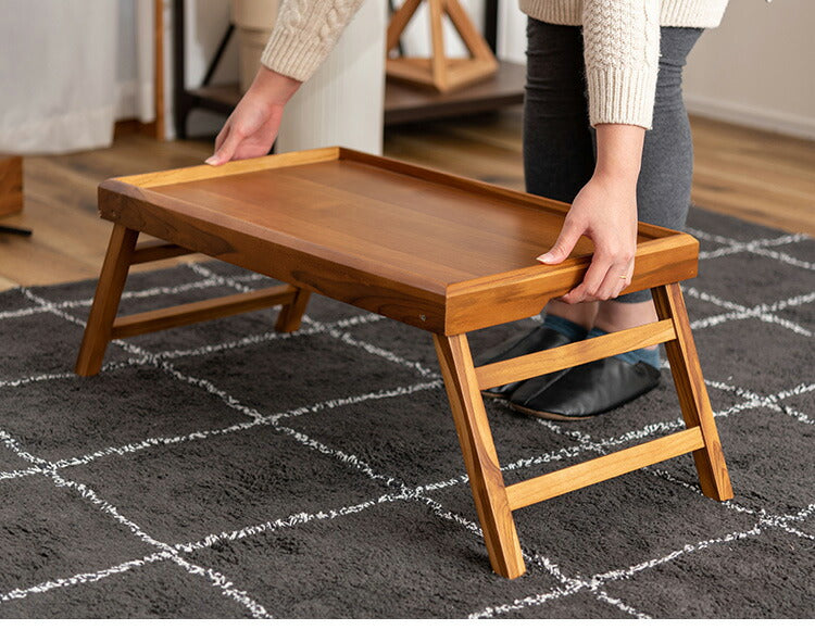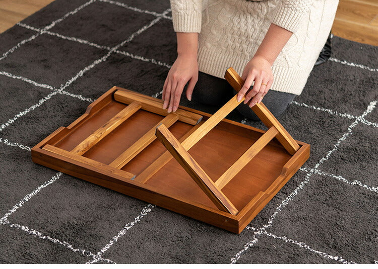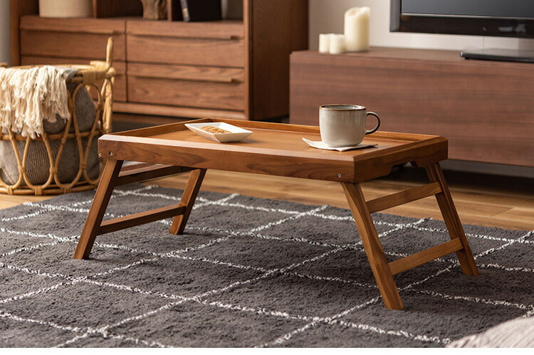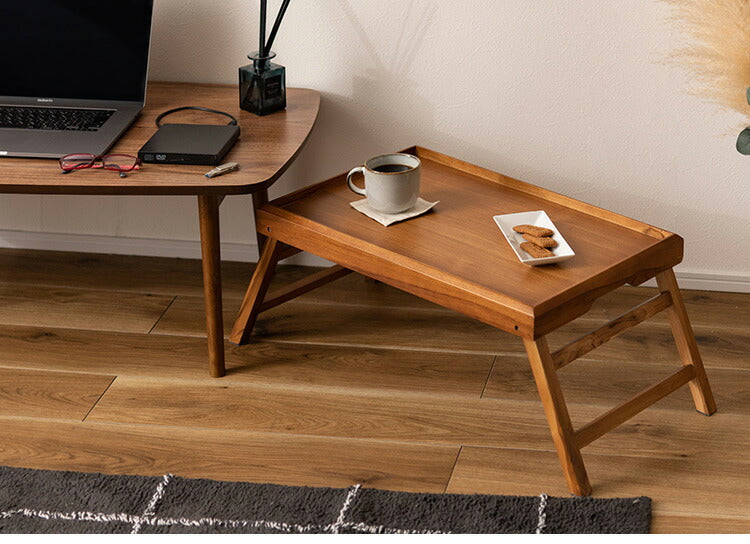 脚が折りたためるローテーブル。様々なシーンに合わせて活躍する、多目的なテーブルです。
