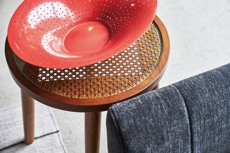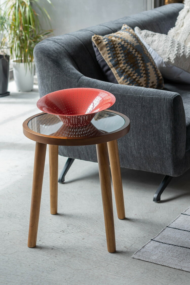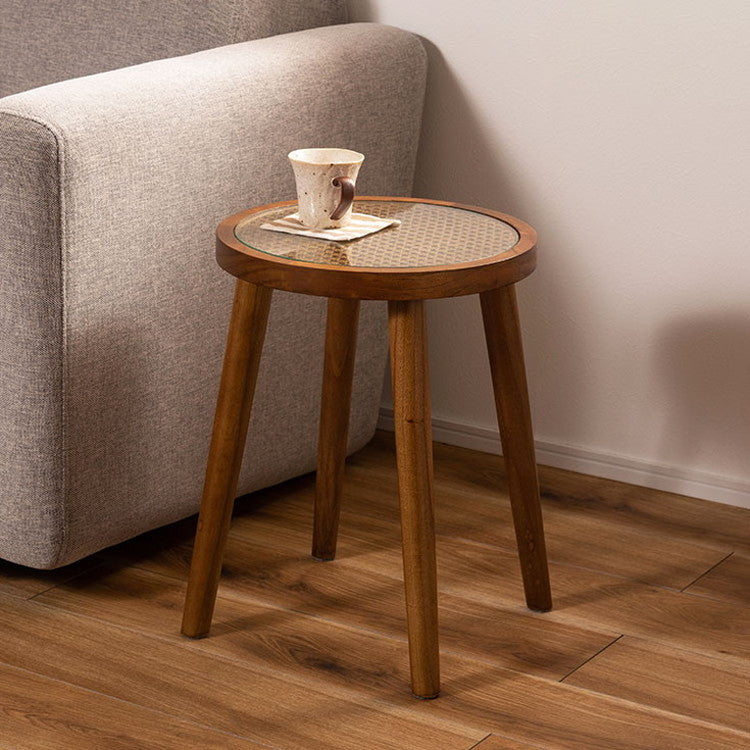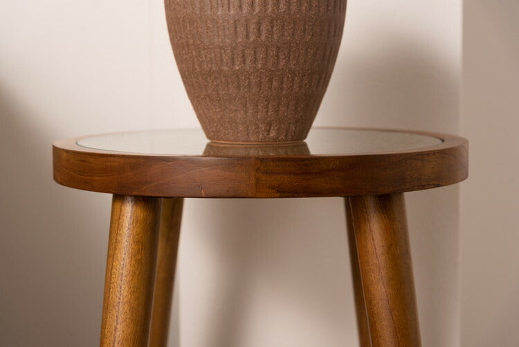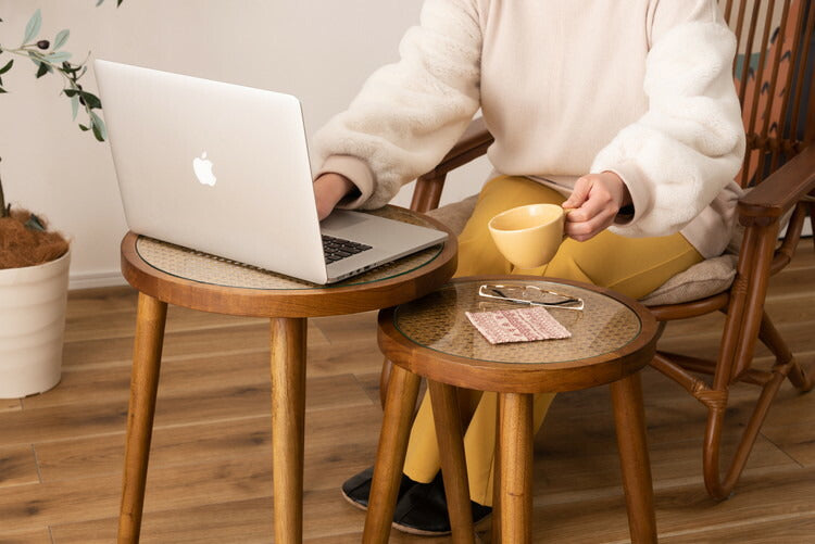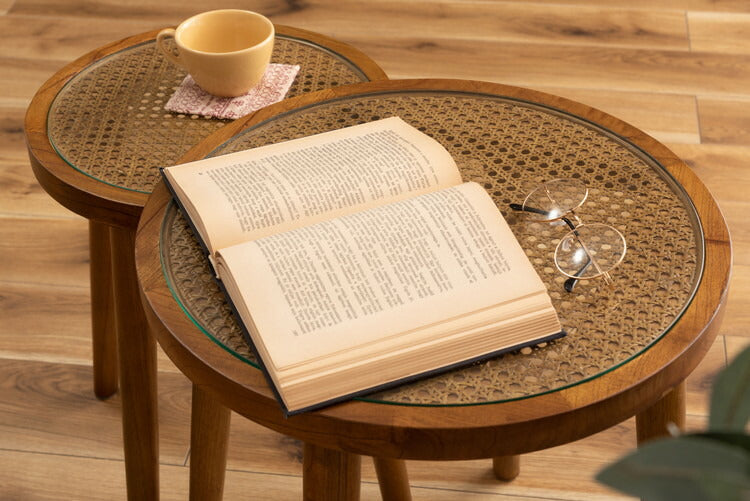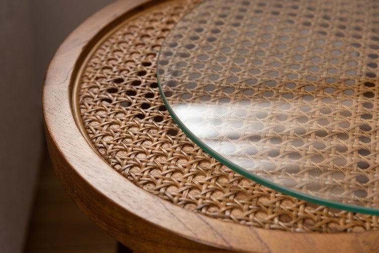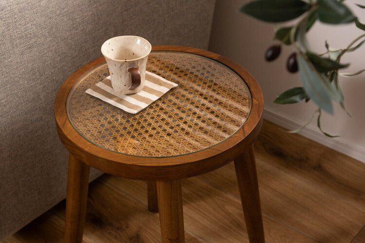 ラウンドガラステーブルS サイドテーブル テーブル ガラステーブル おしゃれ モダン シンプル ラタン 籐 リゾート アジアン ソファ 座椅子 ベッド コンパクト 木製 天然木 ガラス 軽い 軽量(代引不可)