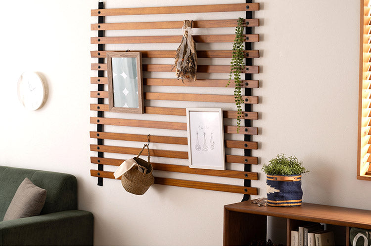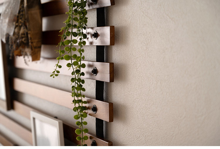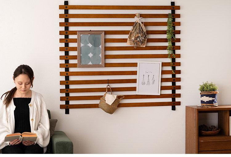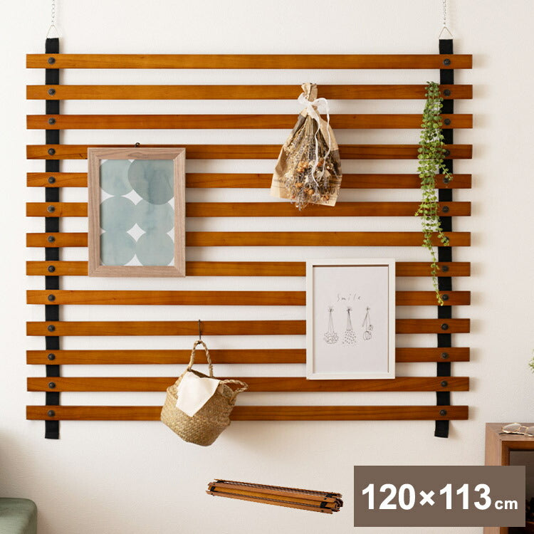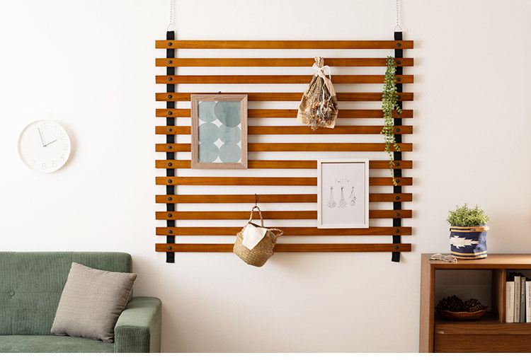 吊り下げて省スペースに設置できる、天然木の雰囲気溢れるナチュラルなパーテーション。