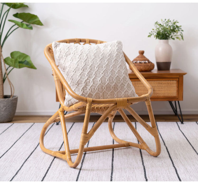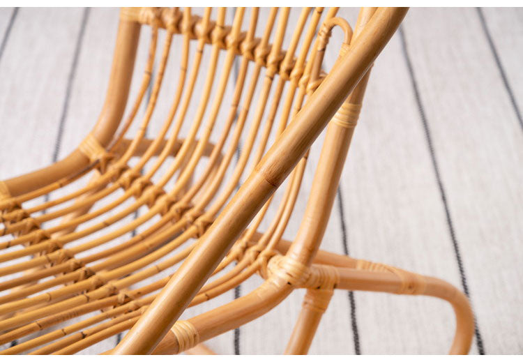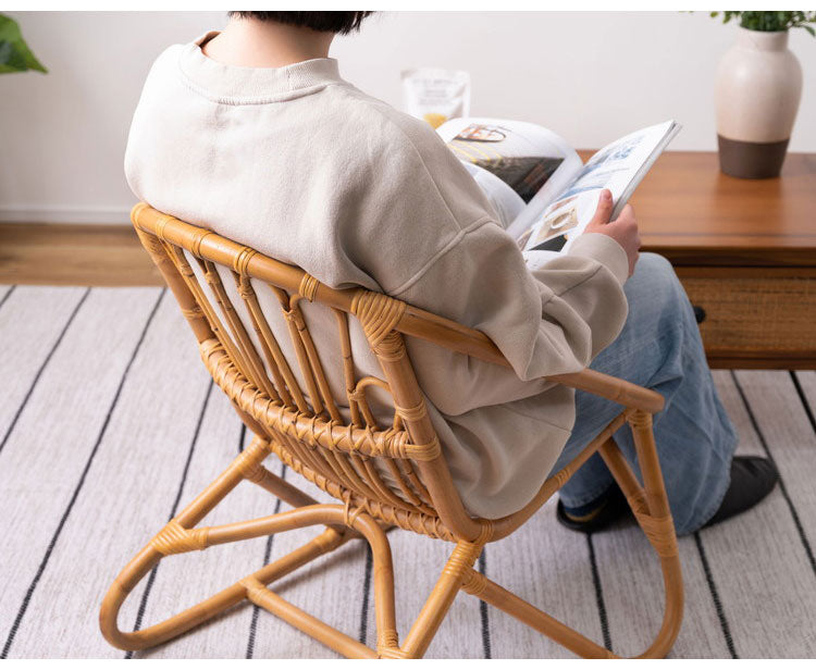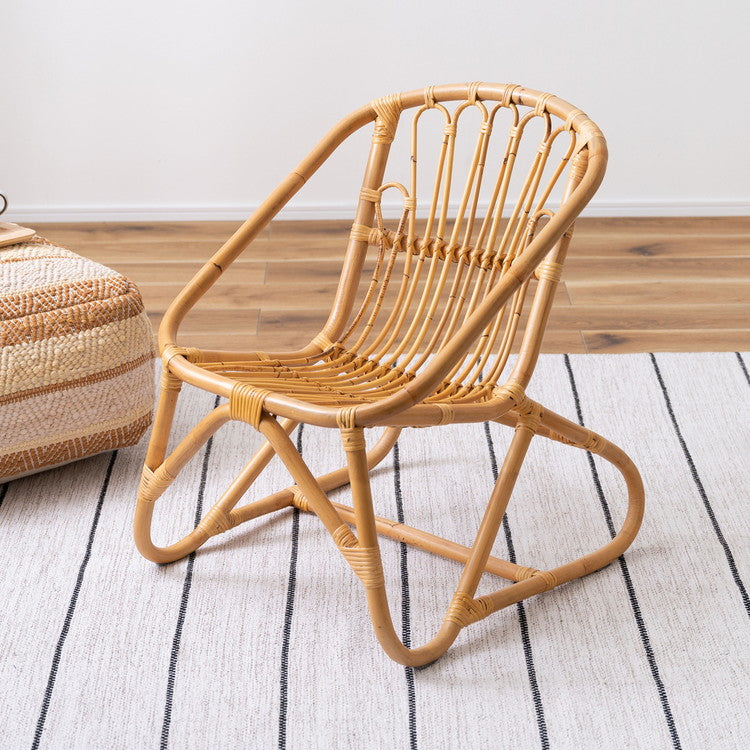 ●天然素材の優しい風合い。丸みを帯びたコンパクトなラタンチェア。