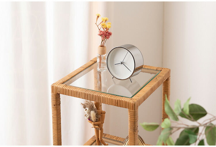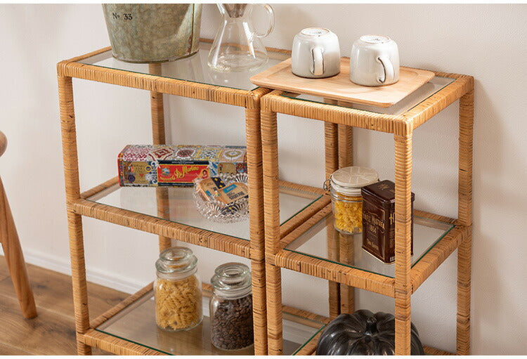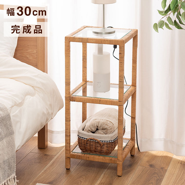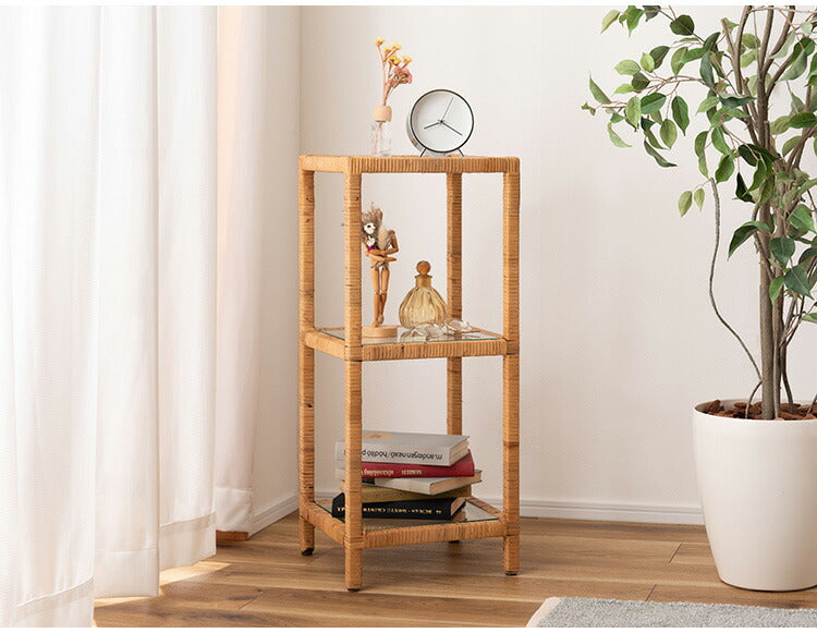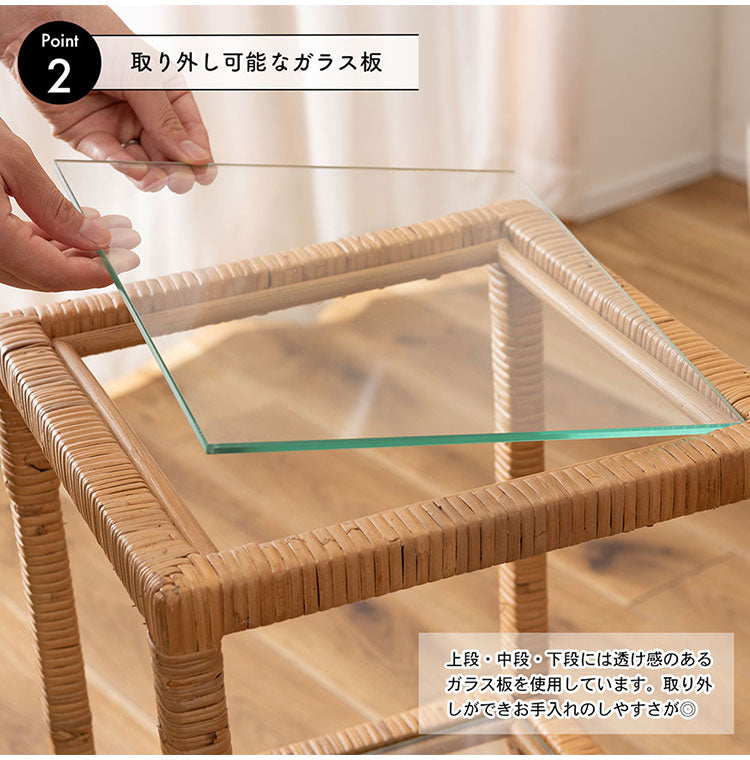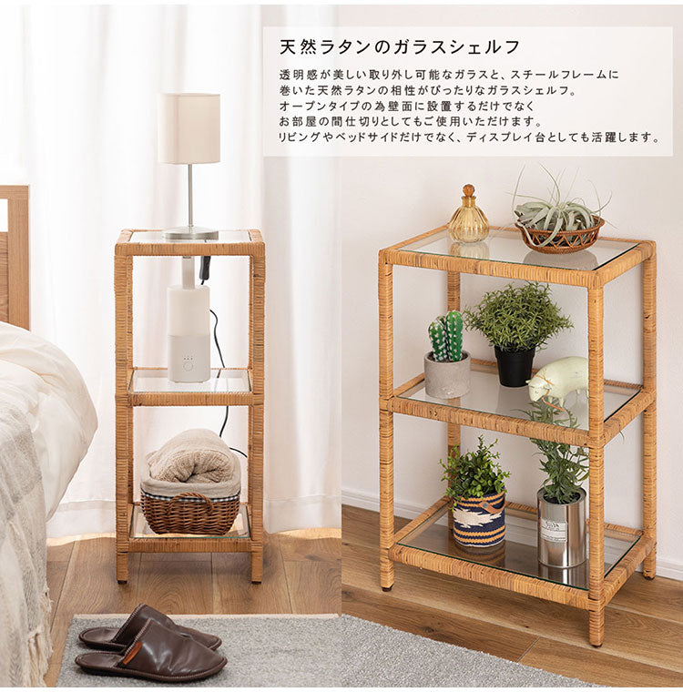 ガラスシェルフ GUY-2 東谷 シェルフ ガラス ガラスシェルフ ラタン 籐 クリア 収納 収納棚 ラック オープンラック 3段 三段 見せる収納 シンプル 北欧 ナチュラル ナイトテーブル 強化ガラス(代引不可)