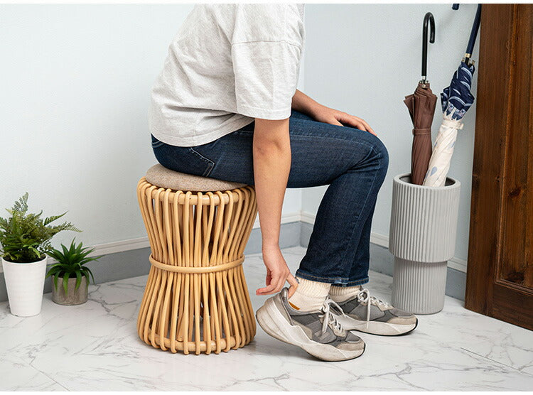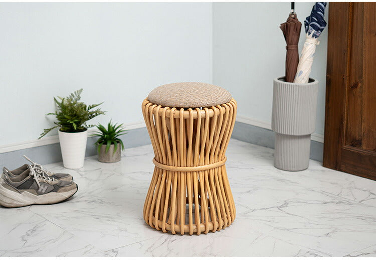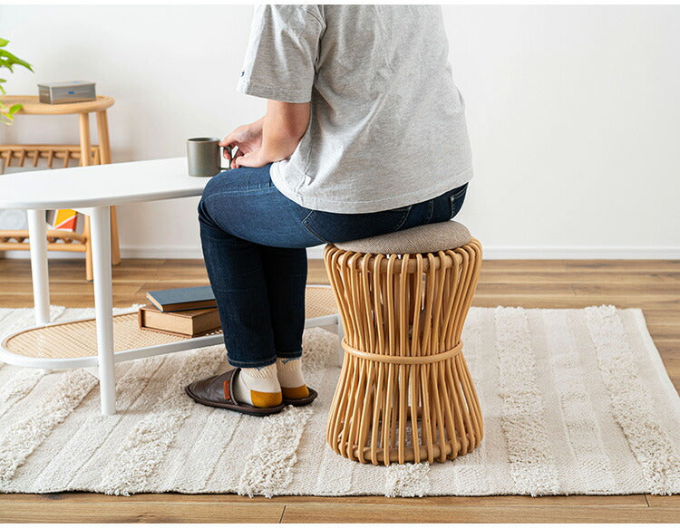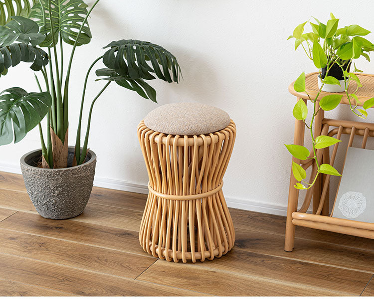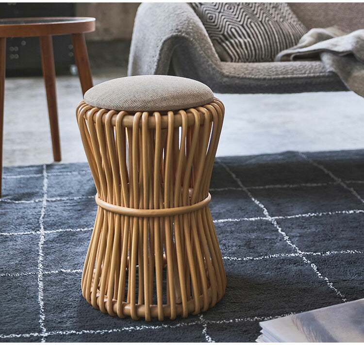 ラウンドスツール GUY-260 東谷 スツール ラタン 籐 円 丸 ラウンド サークル 天然ラタン リゾート 北欧 ナチュラル クッション 高さ40cm 直径30cm 幅30cm 鼓 個性的(代引不可)