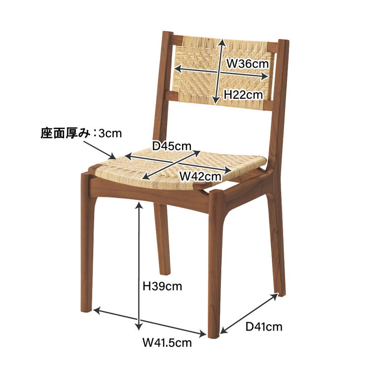 チェア チェアー ダイニングチェア おしゃれ 椅子 イス いす アームレス 肘なし 背もたれ ラタン 籐 天然木 木製 オールシーズン ダイニング リビング 腰掛 シンプル 座面高 45cm(代引不可)