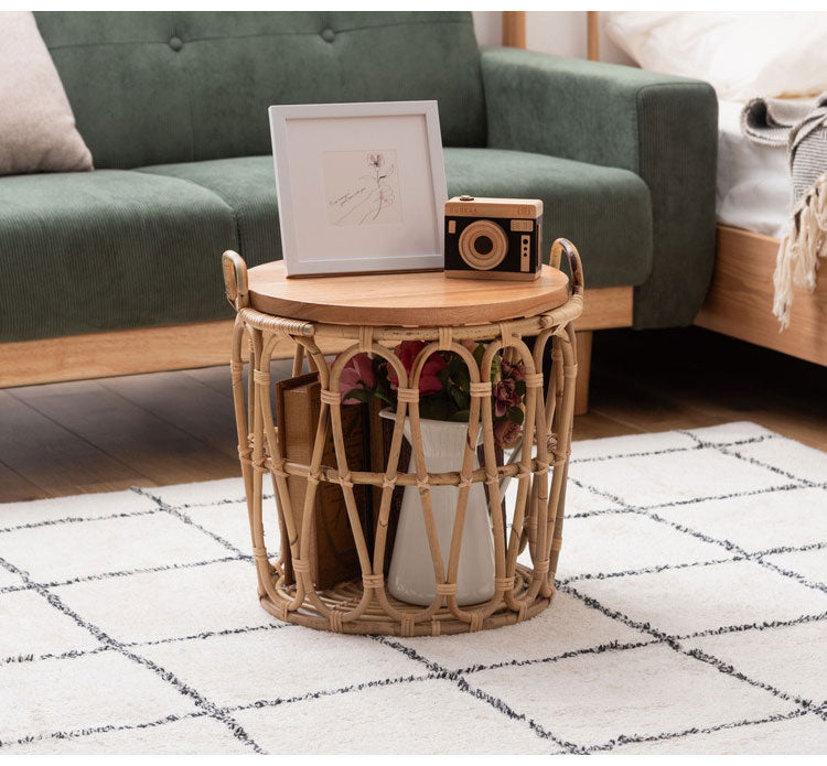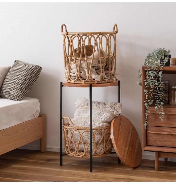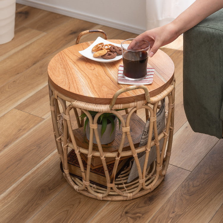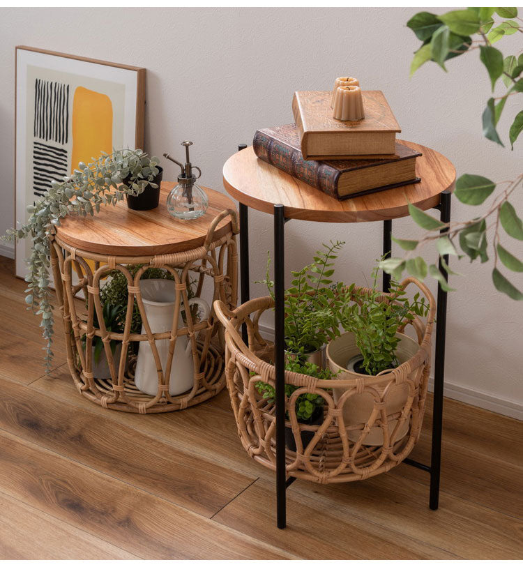 バスケットテーブル テーブル バスケット付き 収納 机 サイドテーブル ラタン 籐 スチール 天板 ソファサイド ベッドサイド インテリア おしゃれ 一人暮らし 新生活 コンパクト 省スペース(代引不可)