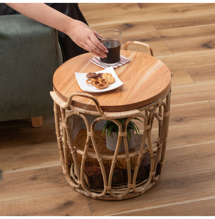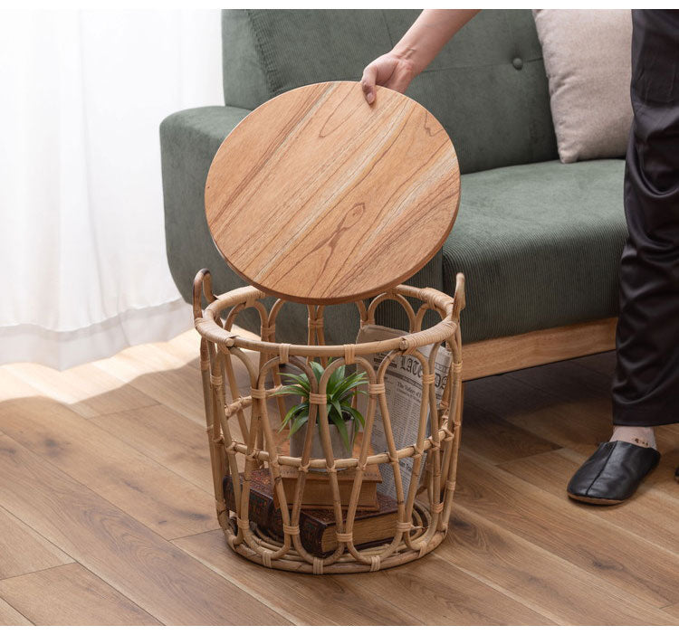 ●取り外し可能な天板が付いた、収納ができるラウンドテーブル
