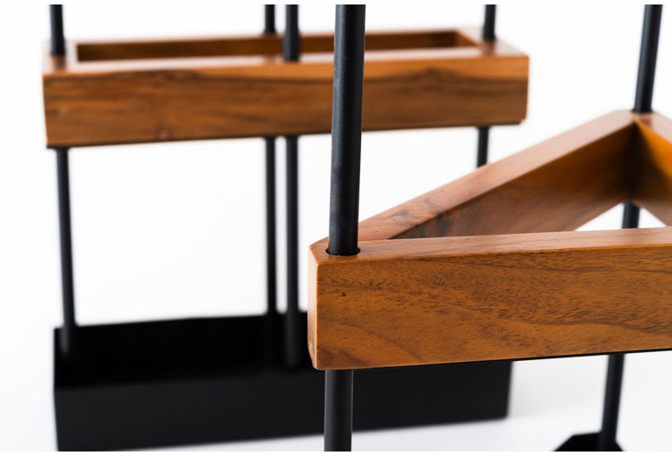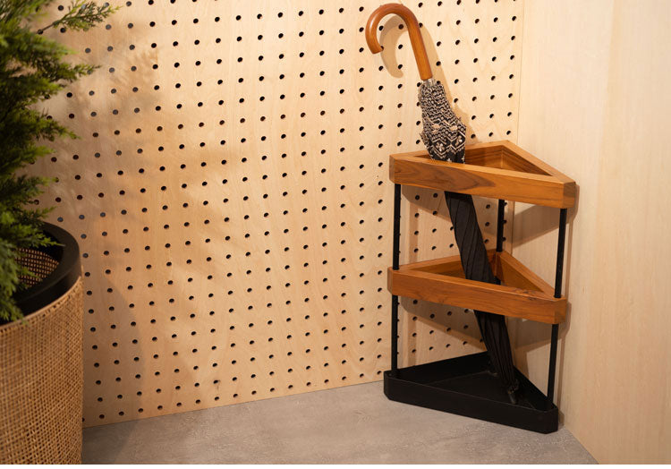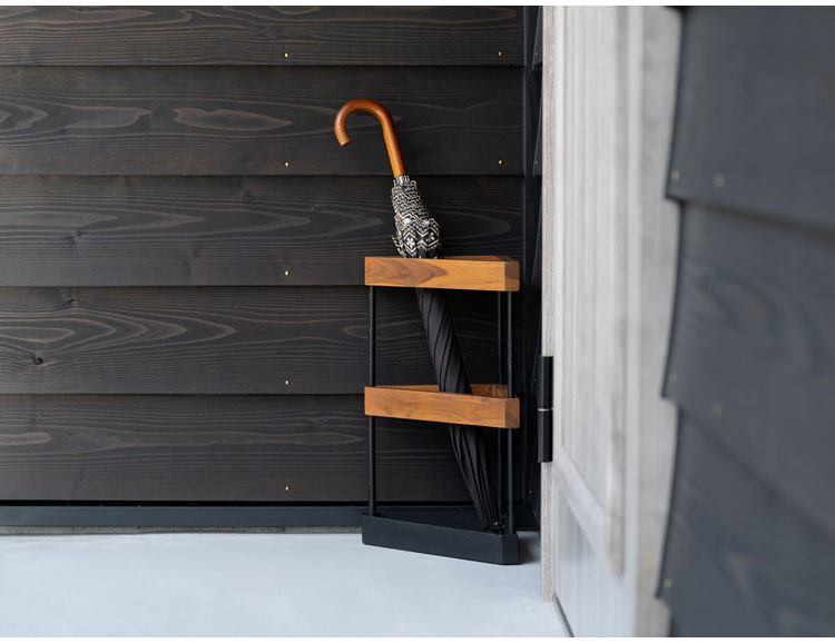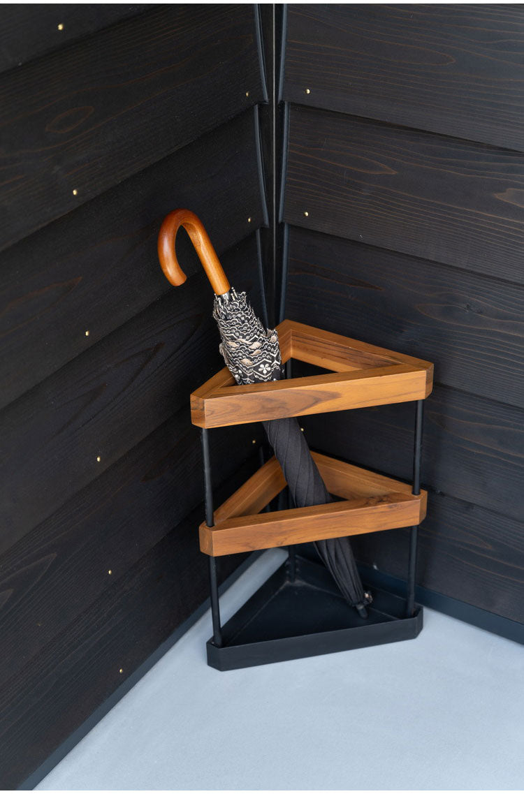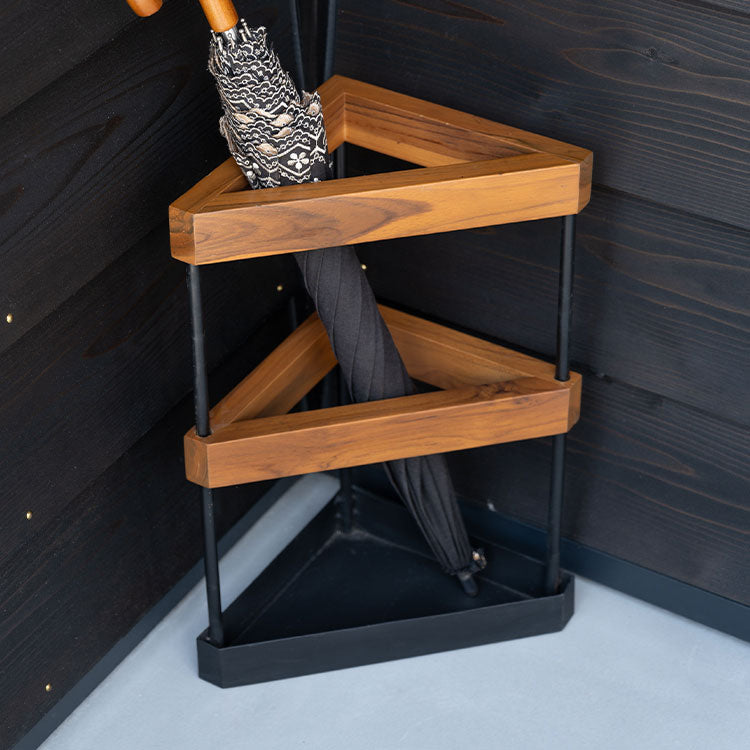 温かみのあるチーク材とスタイリッシュなアイアンを組み合わせたアンブレラスタンド。