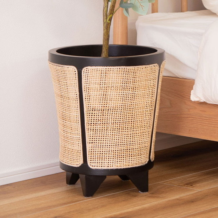 プランターカバー プランター カバー 植物 ラタン 藤 天然木 ミンディ ラウンド 丸 脚付き ブラック 黒 ナチュラル モダン アジアン リゾート シンプル おしゃれ 新生活(代引不可)