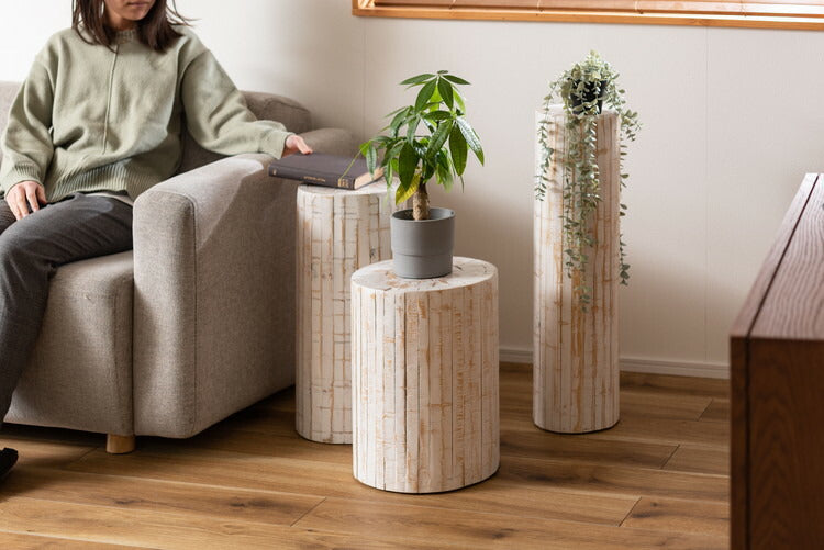 ひとつひとつ表情の違う丸太型のグリーンベース。ホワイトカラーのナチュラルな雰囲気がグリーンを際立たせます。