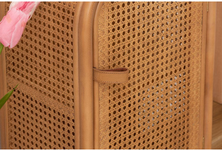 キャビネット 幅36cm チェスト 天然木 ラタン ミニキャビネット 小さめ 小さい かわいい 扉付き 2段 本棚 ベッドサイド 寝室 コンパクト 韓国インテリア ナチュラル 木製(代引不可)