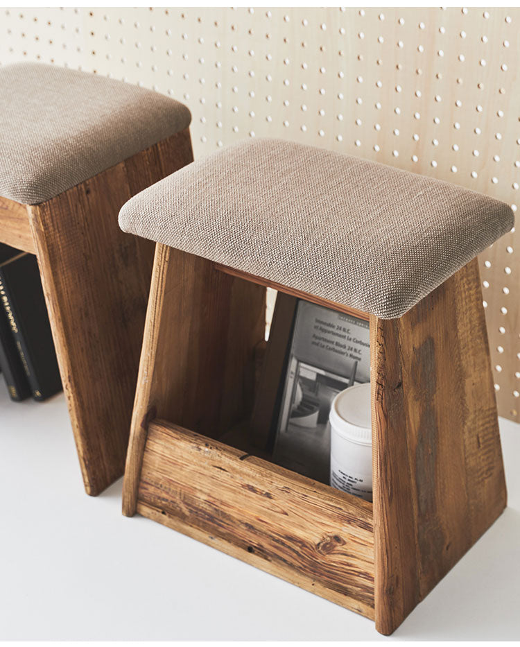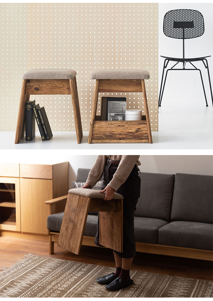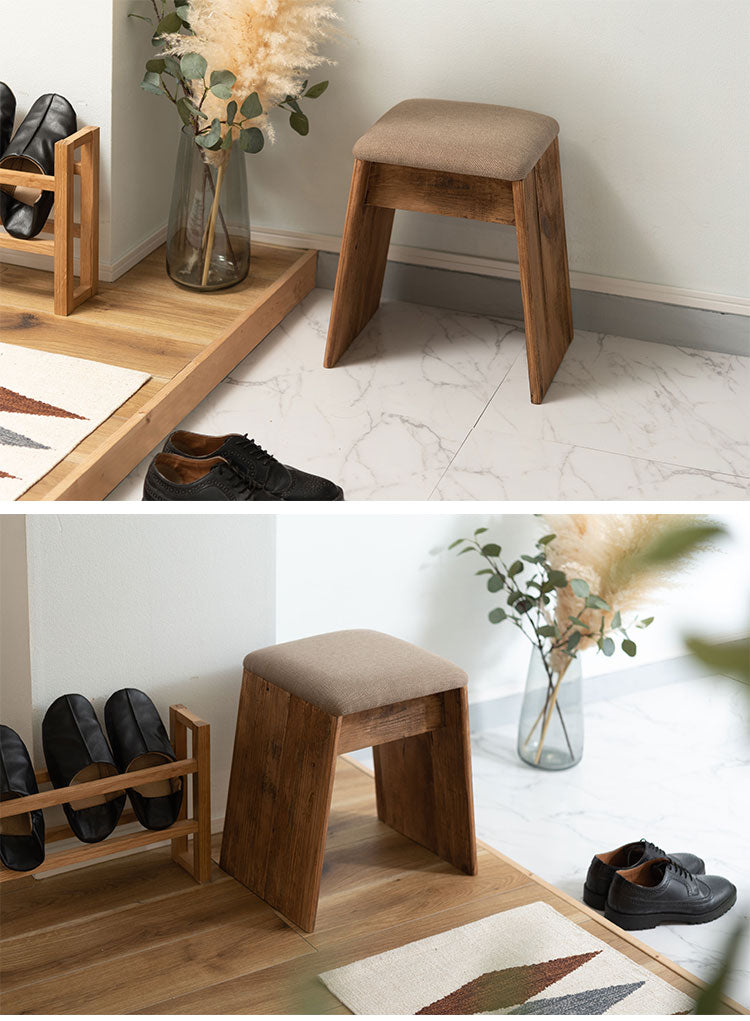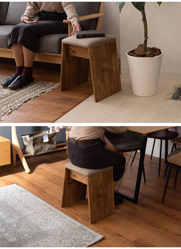 スツール サイドテーブル 簡易テーブル サブスツール 軽量 玄関用 ソファサイド 椅子 コンパクト シンプル ナチュラル 古材 パイン材 天然木 ファブリック グレー ベージュ(代引不可)