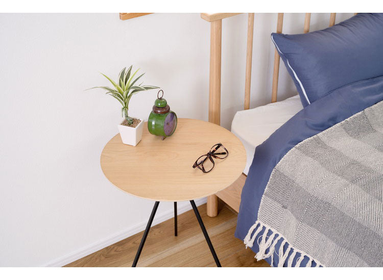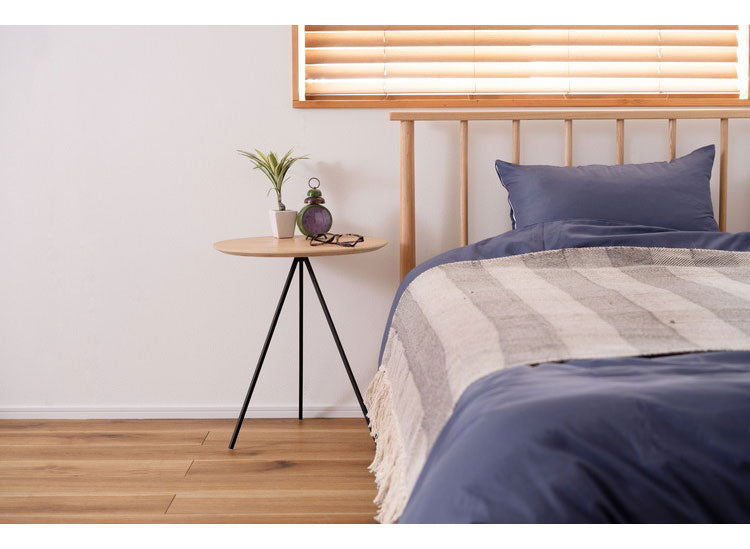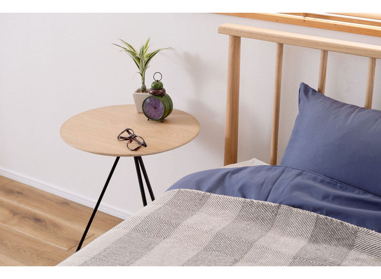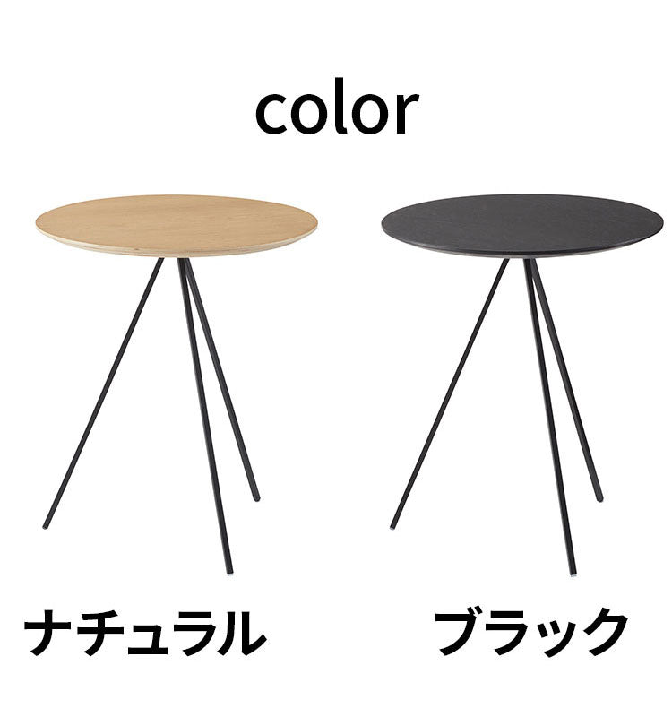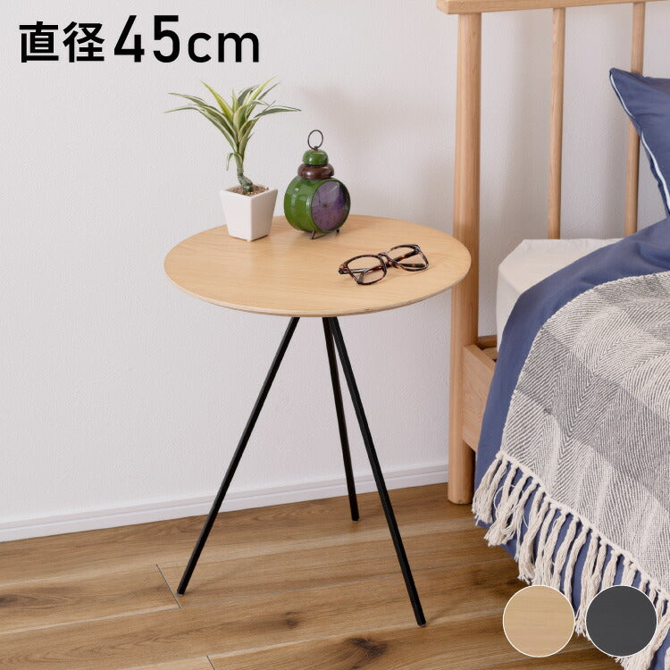 サイドテーブル 幅45cm 高さ51.5cm 三脚 アイアン 木製 天然木 オーク テーブル ナイトテーブル おしゃれ シンプル ナチュラル ブラック ラウンド 丸型 3本脚 モダン(代引不可)
