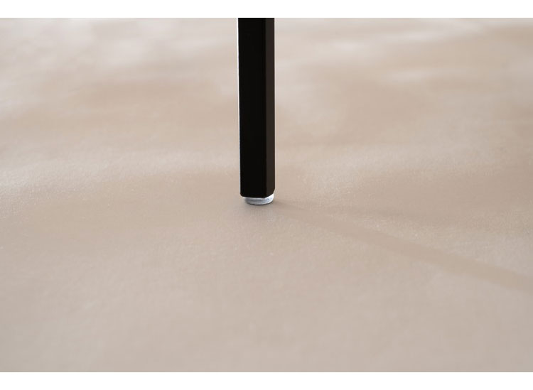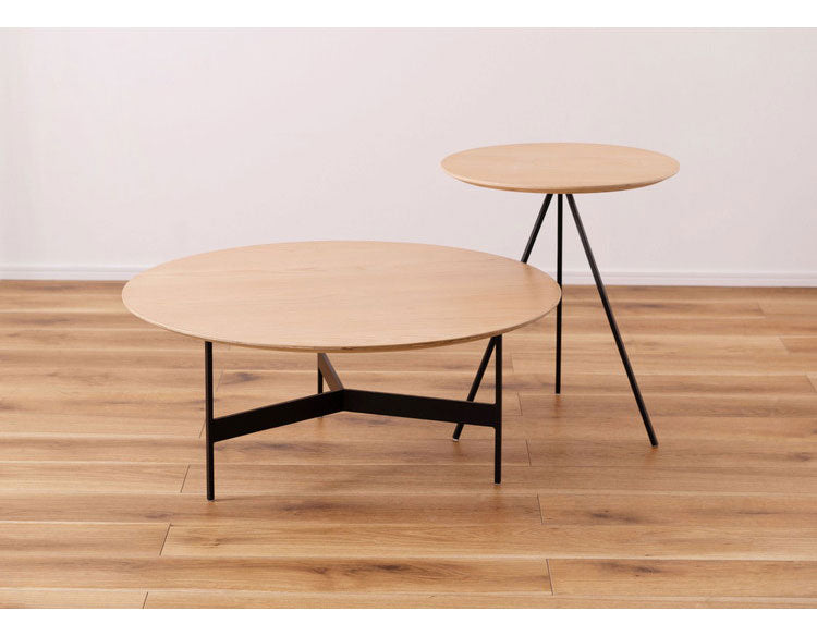 天板には重厚感のあるオーク突板を使用し、脚部は異素材のマットな質感のブラックアイアンレッグを組み合わせています。