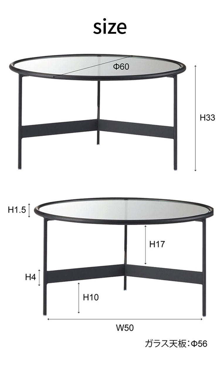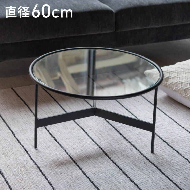 ガラステーブル 幅60cm リビングテーブル ラウンドテーブル 丸型 円形 サイドテーブル ガラス ローテーブル センターテーブル アイアイン 室内 おしゃれ シンプル 異素材(代引不可)