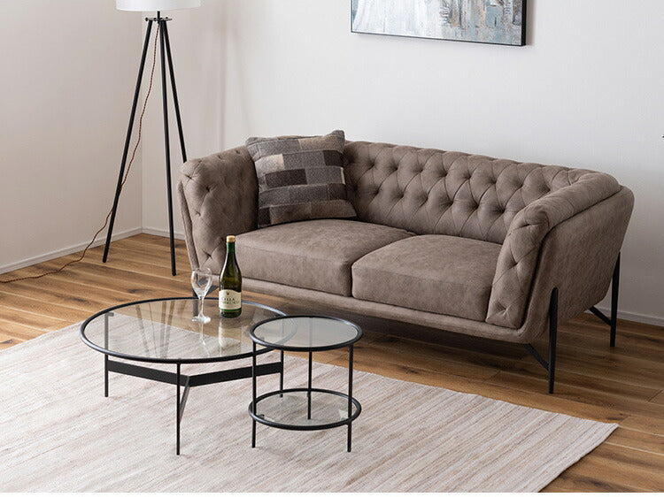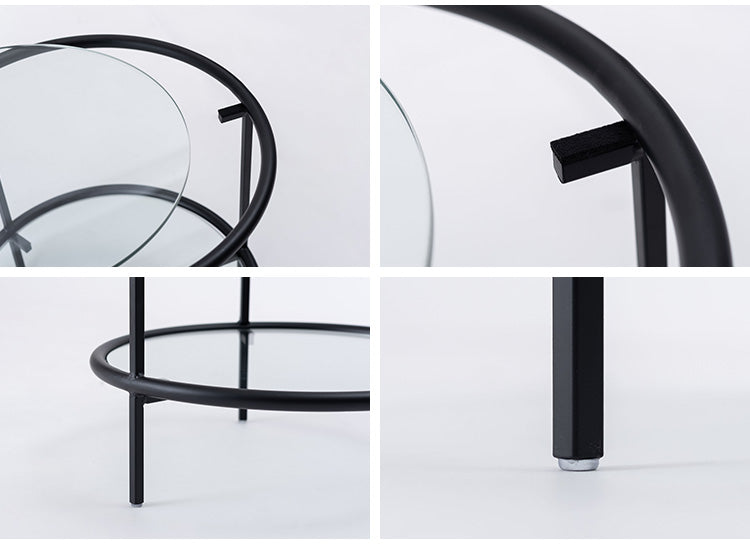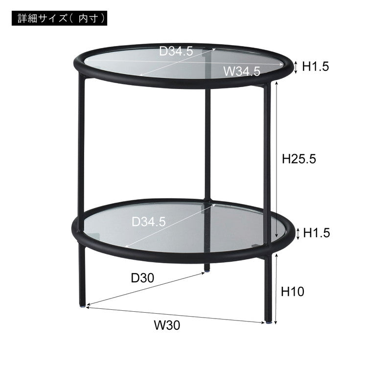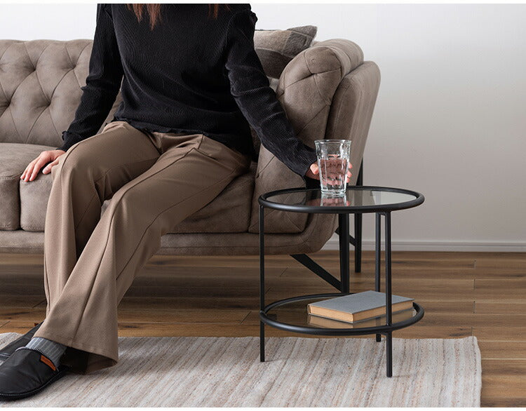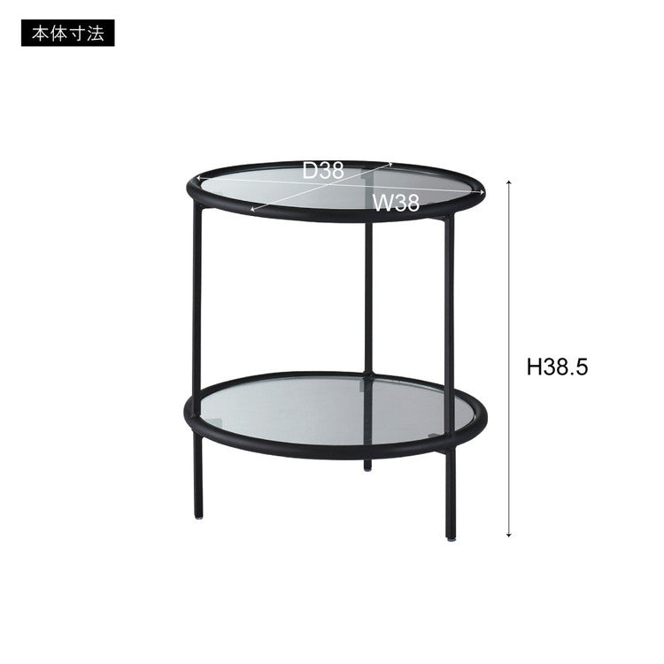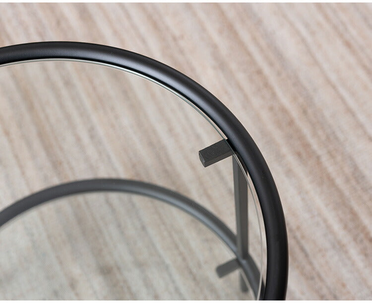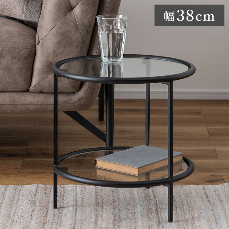ラウンド ガラステーブル 直径38cm サイドテーブル 2段 ガラス アイアン 丸型 円形 ネストテーブル 強化ガラス ラウンドテーブル インダストリアル モダン シンプル おしゃれ クリア ブラック 黒(代引不可)