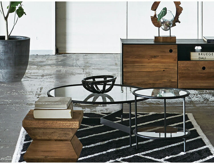 ●マットなブラックアイアンの滑らかな曲線とハードなガラスを組み合わせたテーブルに新サイズが登場しました。