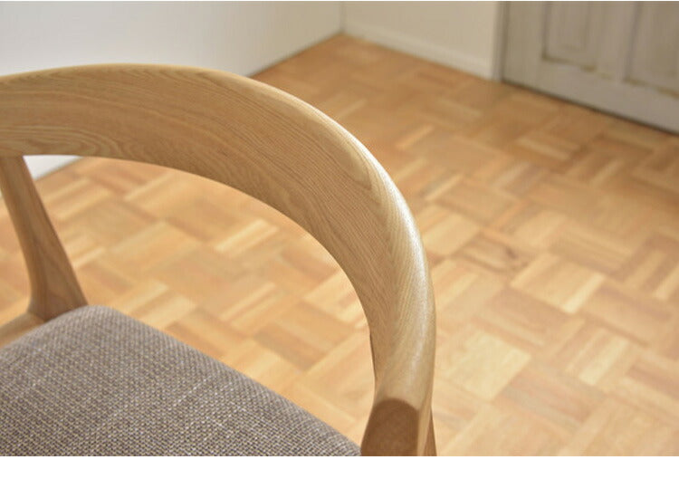 肘掛けと一体化した背もたれは、体を包み込むような緩やかなカーブが、座った時にしっかりと背中にフィット。