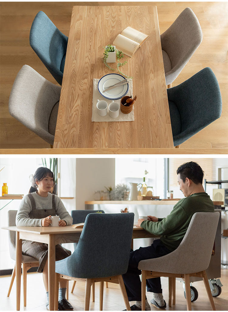 ●身体を包み込むような曲線を取り入れたフォルムと、表情豊かな木目が特徴のアッシュ材を組み合わせたハイバックチェア。●背もたれに柔らかいカーブを掛け、背中にピッタリフィットする設計のチェア。●しっとりとした感触の、手触りの良いファブリックを採用。●後脚は八の字に広がる形状でデザイン性をプラス。●座面は快適に使用していただけるよう、硬すぎず柔らかすぎない適度なクッション性を持たせました。●脚裏は床への傷を防止するフェルト付き。