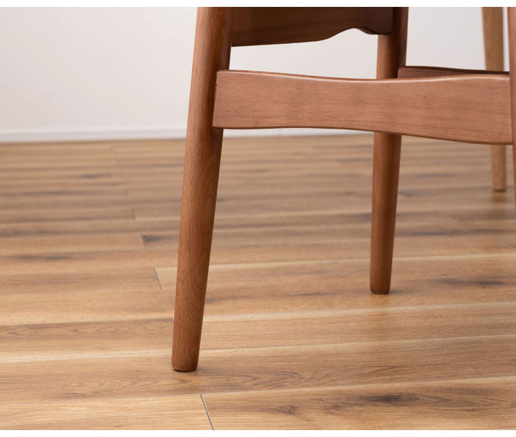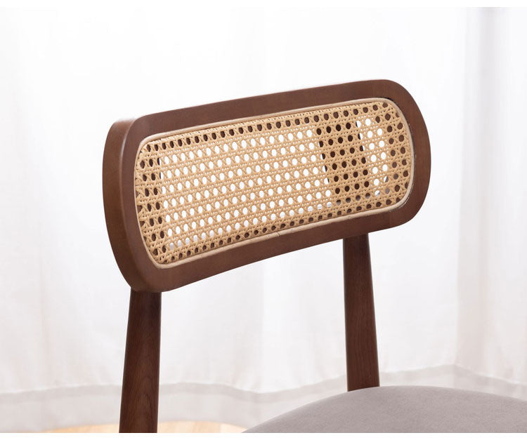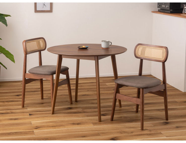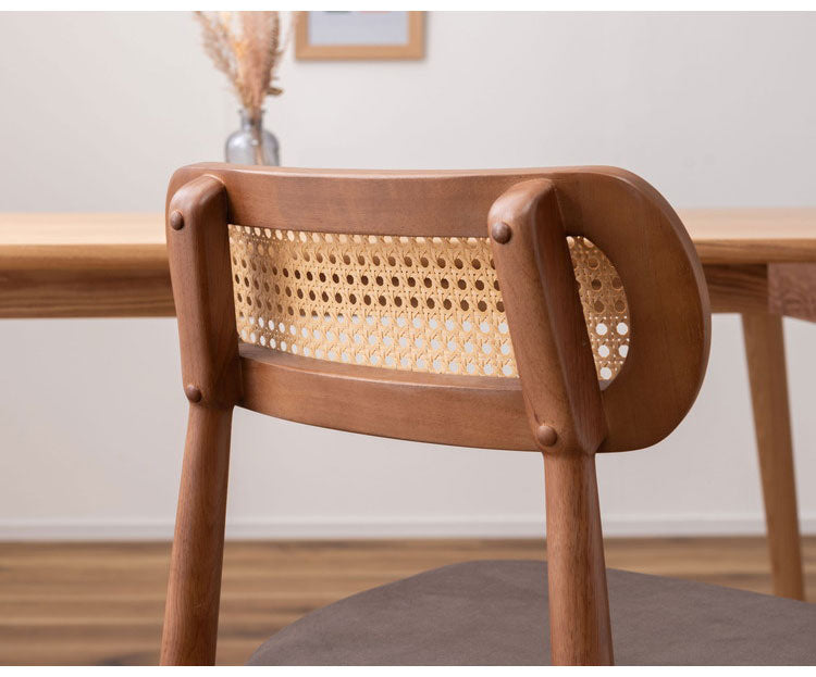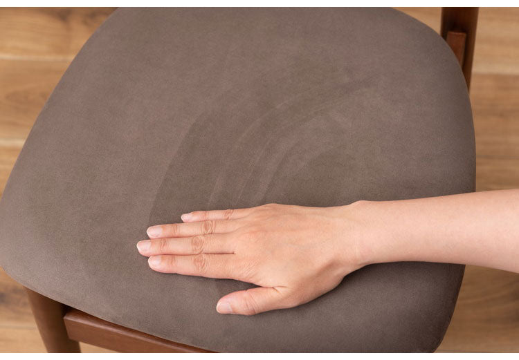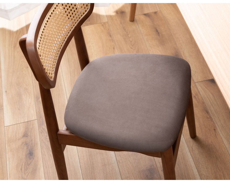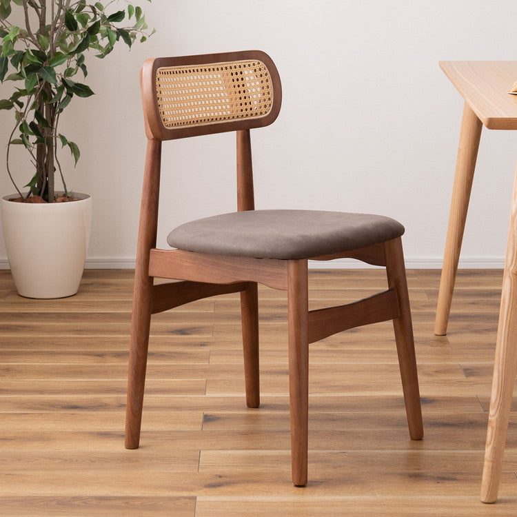高級感のあるスエード調の座面×天然木×ポリプロピレン素材の人口ラタンが優しい雰囲気を作り出してくれるチェア。