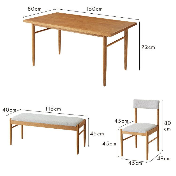 ダイニング4点セット ダイニングテーブル ダイニングチェア2脚 ダイニングベンチ1台 天然木 ダイニングセット おしゃれ 北欧 木製 4人用 新生活 四人用 4人掛け(代引不可)