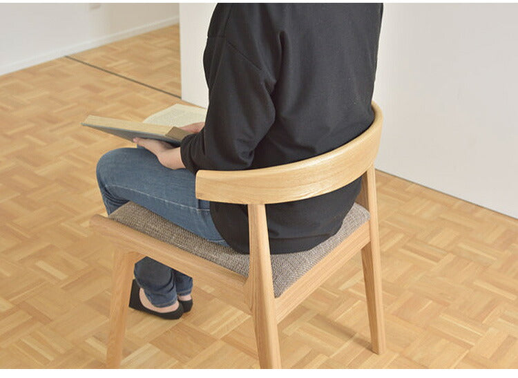 肘掛けと一体化した背もたれは、体を包み込むような緩やかなカーブが、座った時にしっかりと背中にフィット。