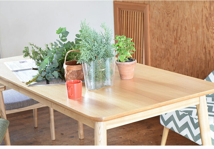 優しいテイストのダイニングテーブルなので、色々なデザインのチェアに合わせやすいのも魅力の一つです。