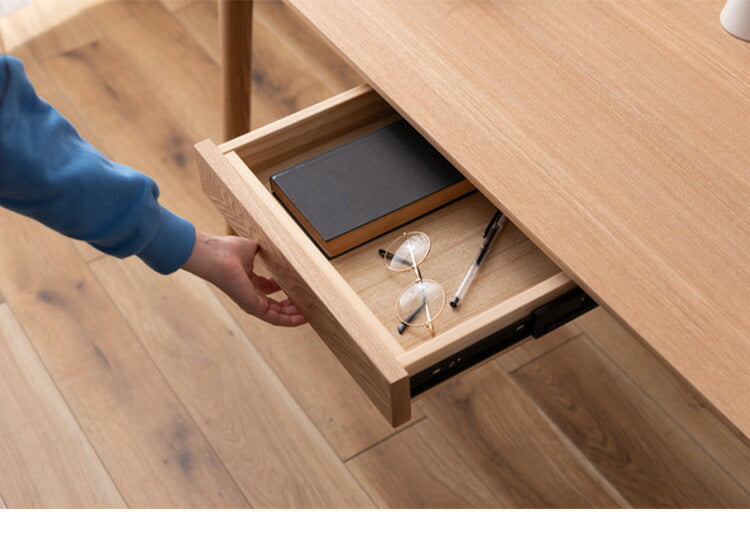 長辺側にそれぞれ引き出しが付いているので、フォークやスプーン、お箸等のカトラリー類をしまっておくのに便利です。