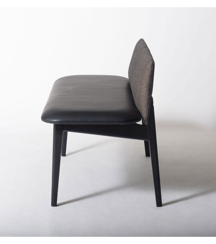 ダイニングベンチ 日本製 天然木 木脚 レザー 高級感 シンプル ベンチ 長椅子 イス おしゃれ ローバック アームレス 肘なし 合皮 レザー モダン 黒 ブラック ブラウン(代引不可)
