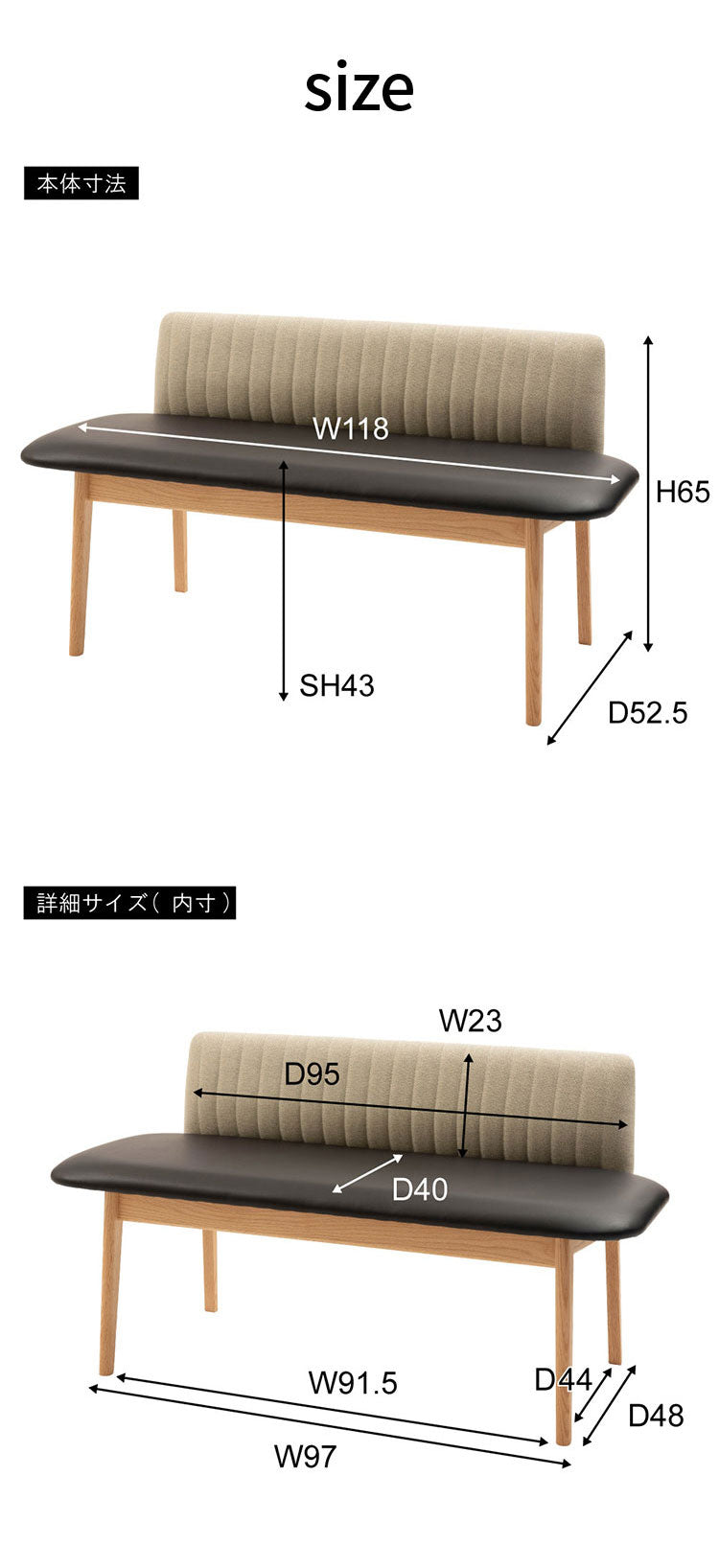幅118×奥行52.5×高さ65×座面高さ43cm