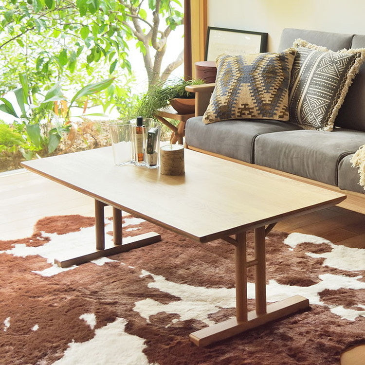 センターテーブル ローテーブル 幅115cm おしゃれ 北欧 リビングテーブル 机 木製 オーク ウォールナット ブラウン ナチュラル シンプル T字脚 新生活(代引不可)