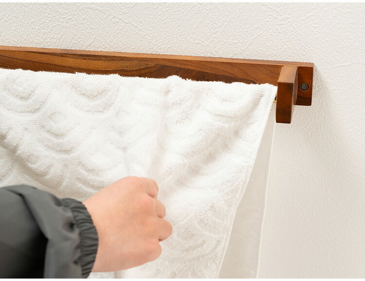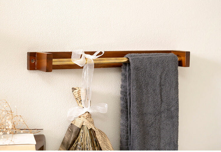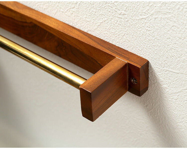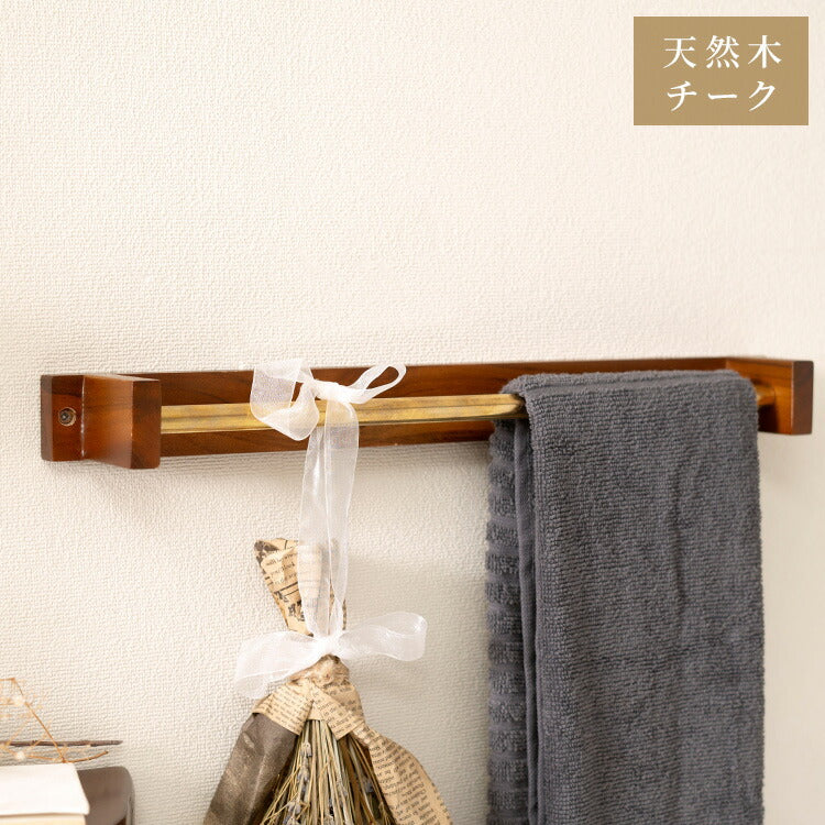 タオルハンガー チーク バータイプ タオル掛け タオルホルダー 壁掛け 収納 収納棚 木製 天然木 ブラウン チーク材 木 おしゃれ シンプル ナチュラル 北欧 カントリー カントリー調 ゴールド(代引不可)