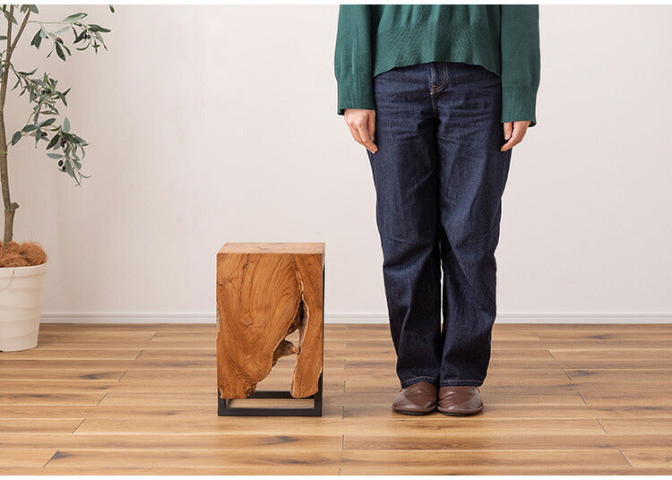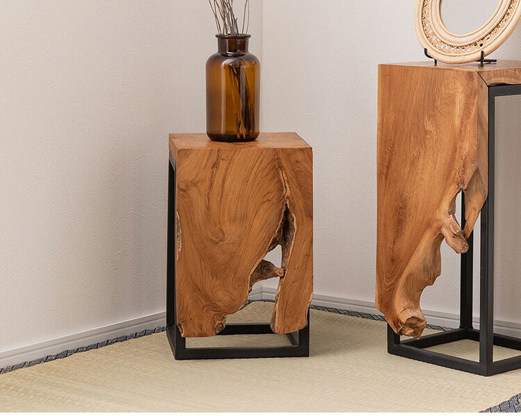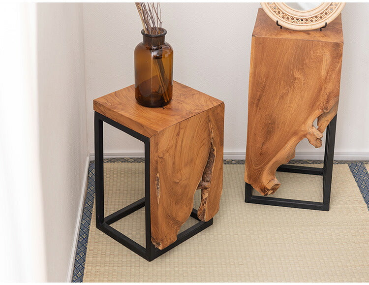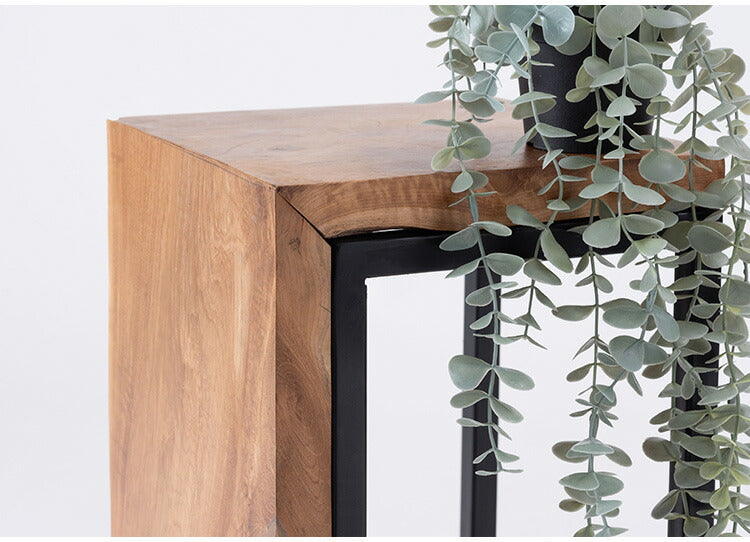 プランタースタンド チーク 高さ40cm スタンド 天然木 木製 スチール おしゃれ ブラウン サイドテーブル 花台 植物 四角 フラワースタンド シンプル モダン ヴィンテージ インテリア 北欧(代引不可)