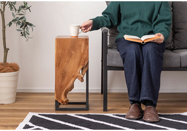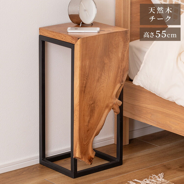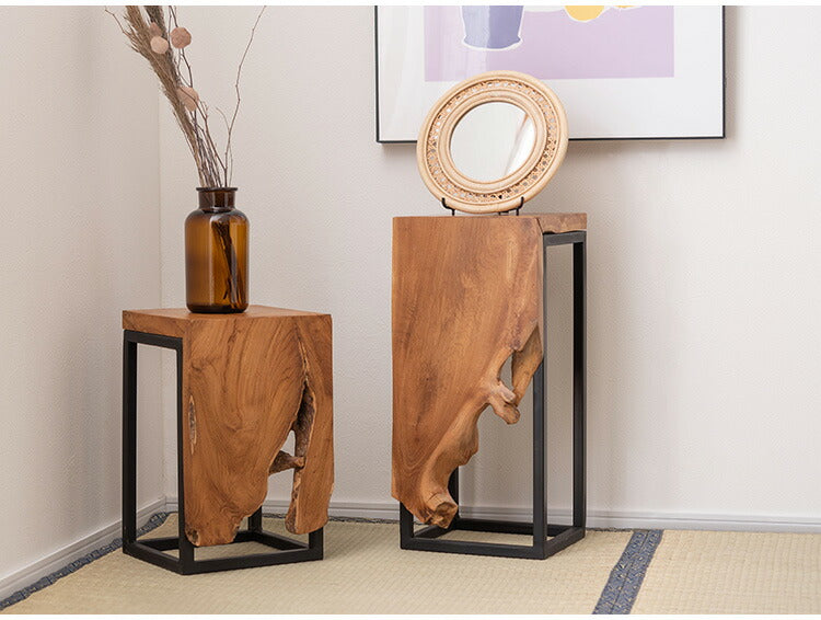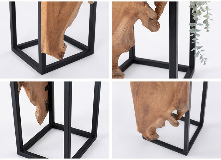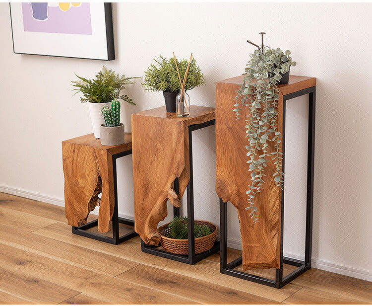 プランタースタンド チーク 高さ55cm スタンド 天然木 木製 スチール おしゃれ ブラウン サイドテーブル 花台 植物 四角 フラワースタンド シンプル モダン ヴィンテージ インテリア 北欧(代引不可)