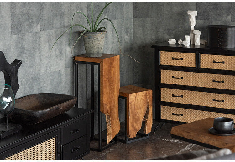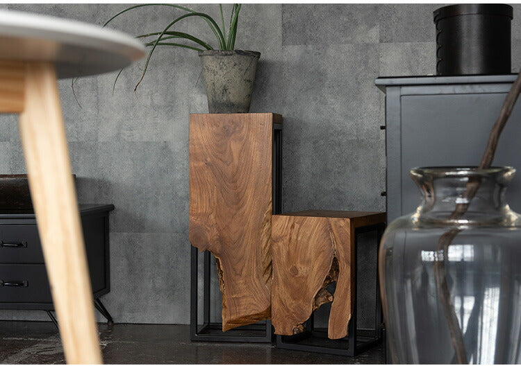 段違いで並べて使えるプランタースタンドと、座面下に入れ込める形のサイドテーブル、4アイテムでご用意致しました。