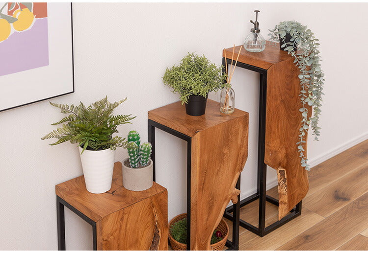 プランタースタンド チーク 高さ70cm スタンド 天然木 木製 スチール おしゃれ ブラウン サイドテーブル 花台 植物 四角 フラワースタンド シンプル モダン ヴィンテージ インテリア 北欧(代引不可)