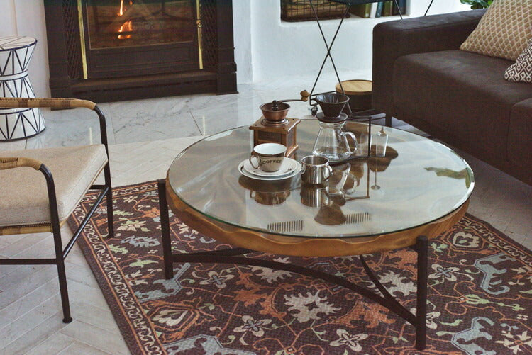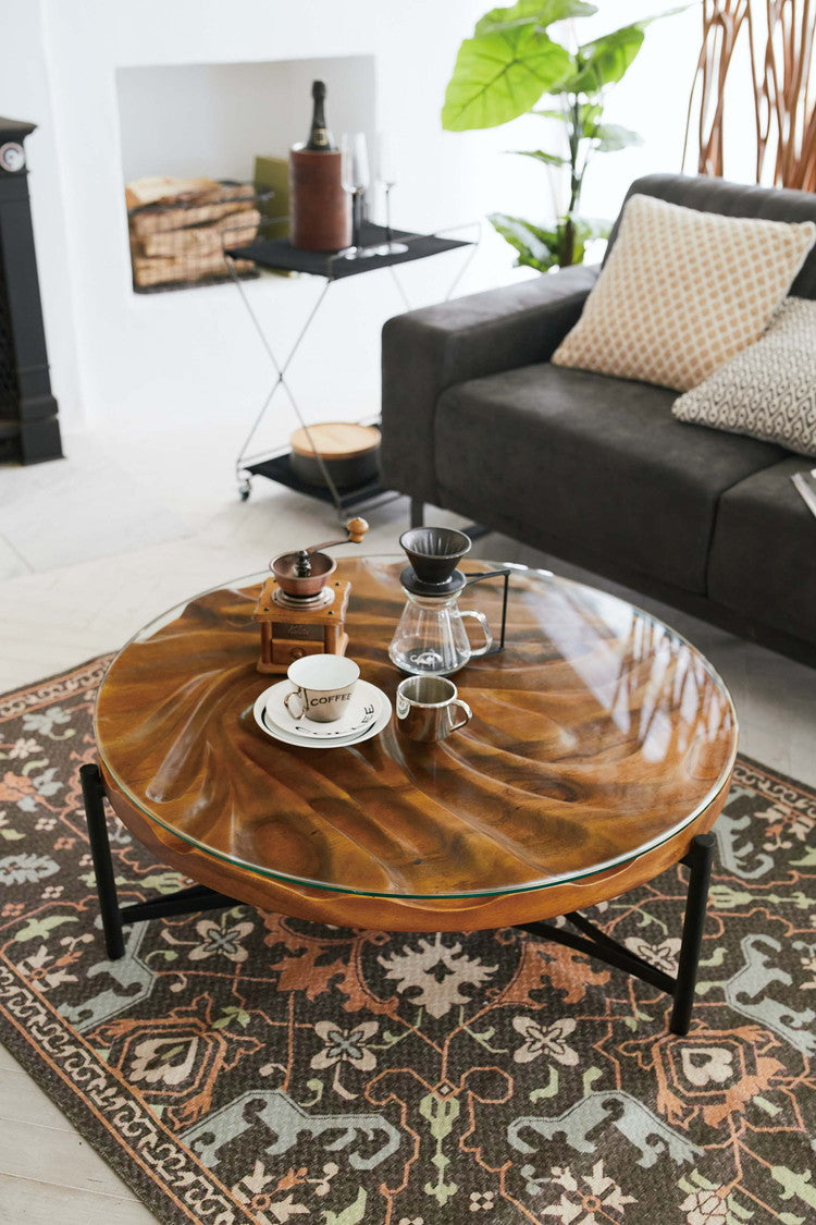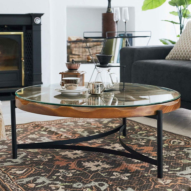 センターテーブル ローテーブル 円形 高級感 ラウンドテーブル テーブル 大きい 天然木 ガラステーブル リビングテーブル リビング モダン シック スチール おしゃれ かっこいい ソファ(代引不可)