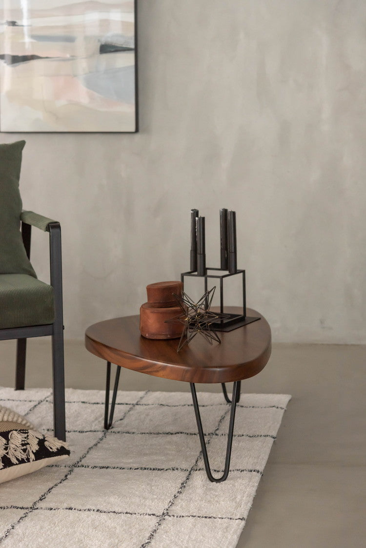 センターテーブル ローテーブル テーブル サイドテーブル ナイトテーブル 北欧 木製 天然木 角丸 スチール ブラウン 幅80cm 高さ30cm シンプル ソファ 座椅子 一人暮らし リビング(代引不可)