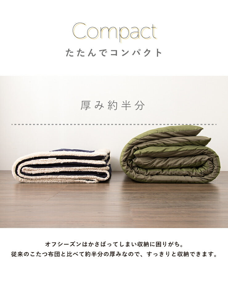 こたつ布団 長方形 コーデュロイ 190×230cm 薄掛け マイクロファイバー ボア 北欧 おしゃれ あったか 暖かい 省スペース 収納 天板サイズ120×80cm以下 こたつ 掛け布団 ふとん コタツ 炬燵 暖房