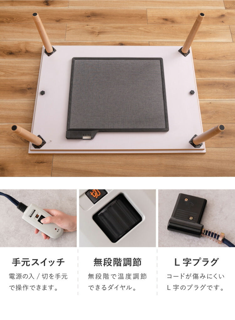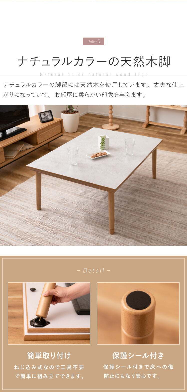 こたつ フラットヒーター 幅105cm 継ぎ脚式 継脚 大理石調 木目調 節電 天然木 木製 おしゃれ 北欧 韓国インテリア オールシーズン 高さ調節 手元コントローラー センターテーブル リビングテーブル(代引不可)