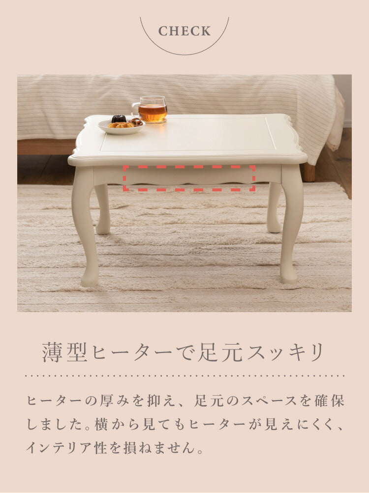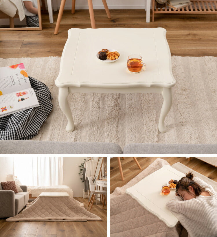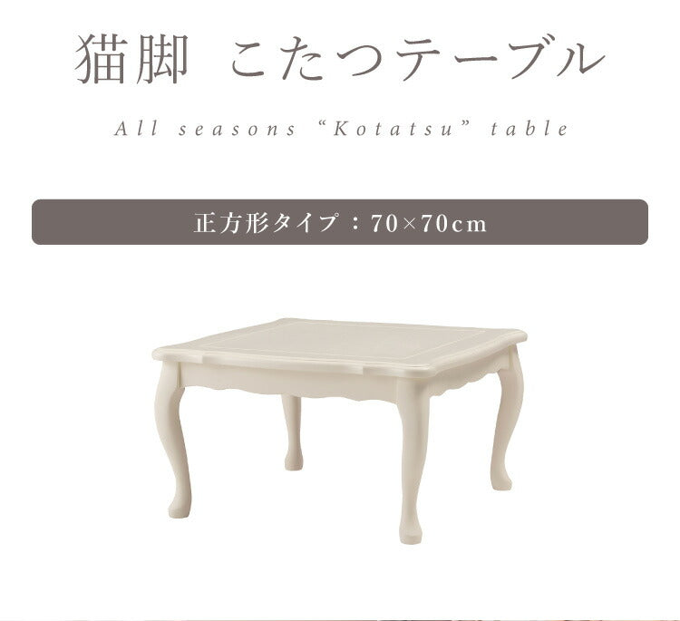 こたつ 石英管ヒーター 幅70cm 正方形 テーブル 猫脚 節電 おしゃれ 白 ホワイト スイッチ シンプル オールシーズン 木製 天然木 やぐら 一人暮らし リビング ソファ 座椅子 女性 コタツ 炬燵(代引不可)