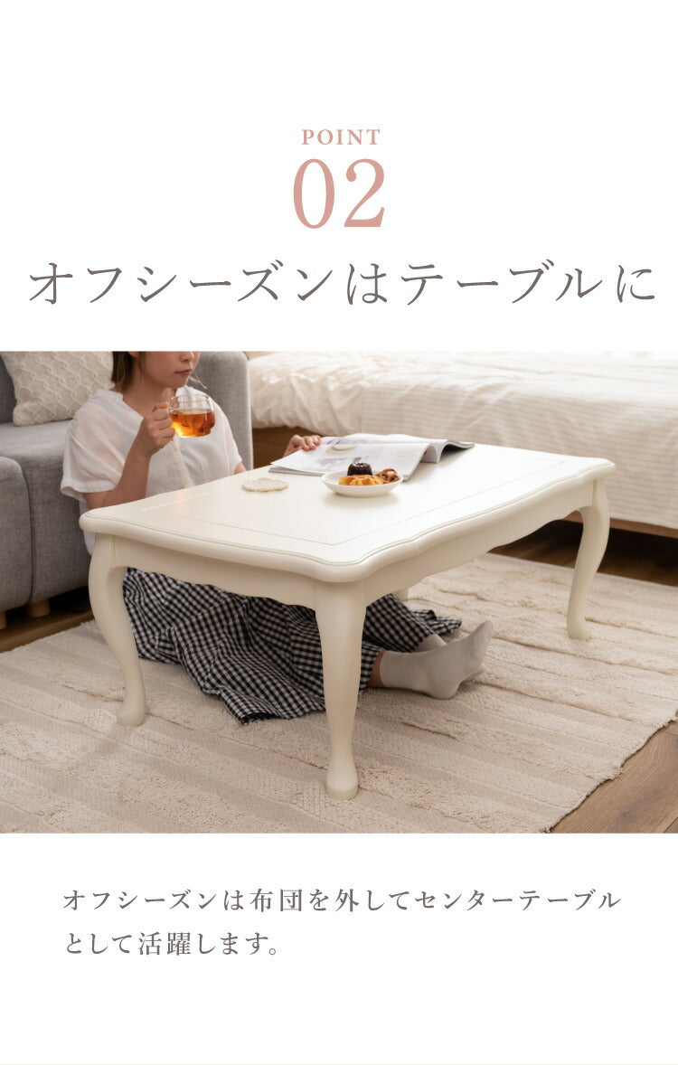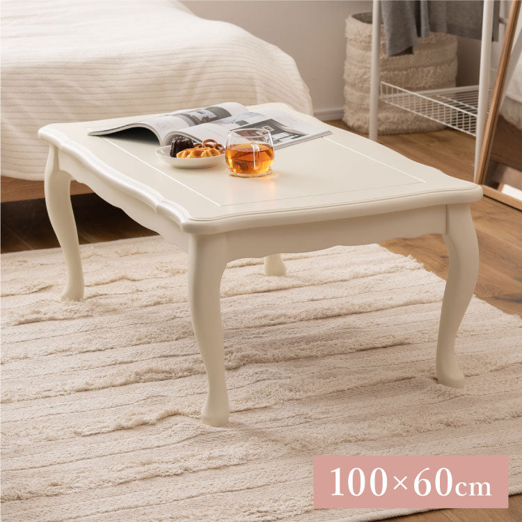 こたつ 石英管ヒーター 幅100cm 長方形 テーブル 猫脚 節電 おしゃれ 白 ホワイト スイッチ シンプル オールシーズン 木製 天然木 やぐら 一人暮らし リビング ソファ 座椅子 女性 炬燵 コタツ(代引不可)