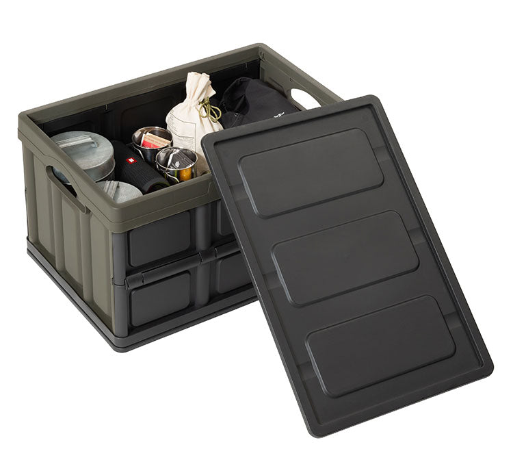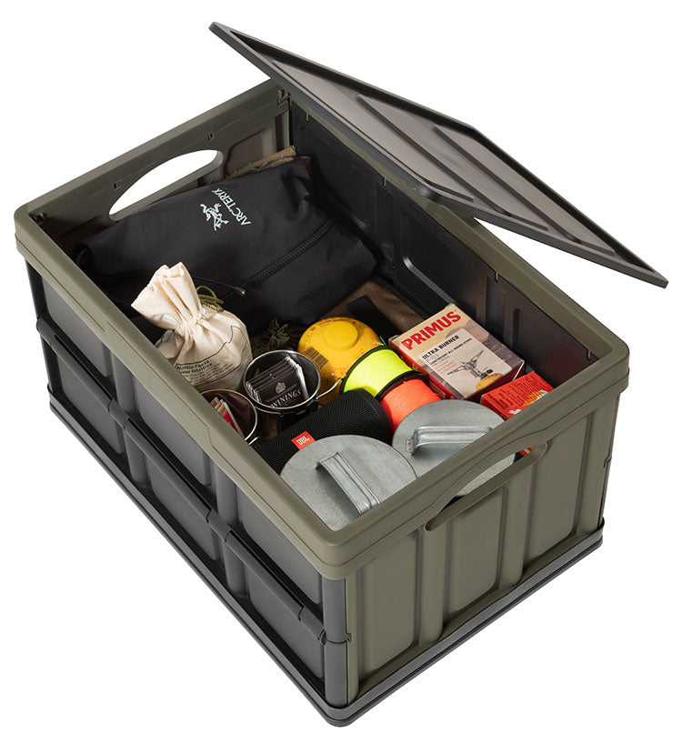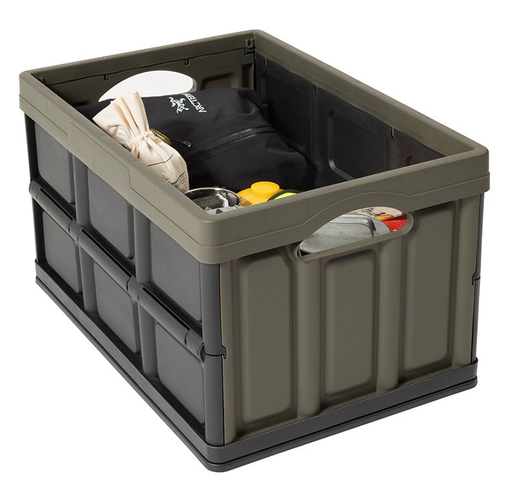 キャンプの収納や、インテリアの収納として使うことができるフォルダブルクレート。