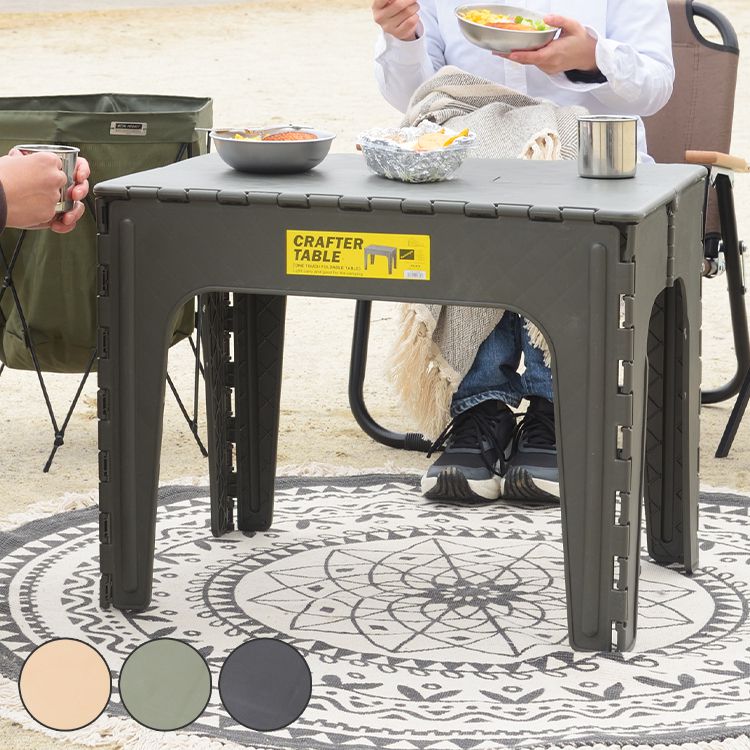 クラフターテーブル 机 折りたたみテーブル フォールディングテーブル スクエア 四角 アウトドア 屋外 野外 キャンプ BBQ ポリプロピレン 持ち運び コンパクト サンドベージュ グリーン カーキ(代引不可)