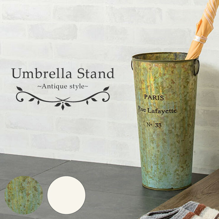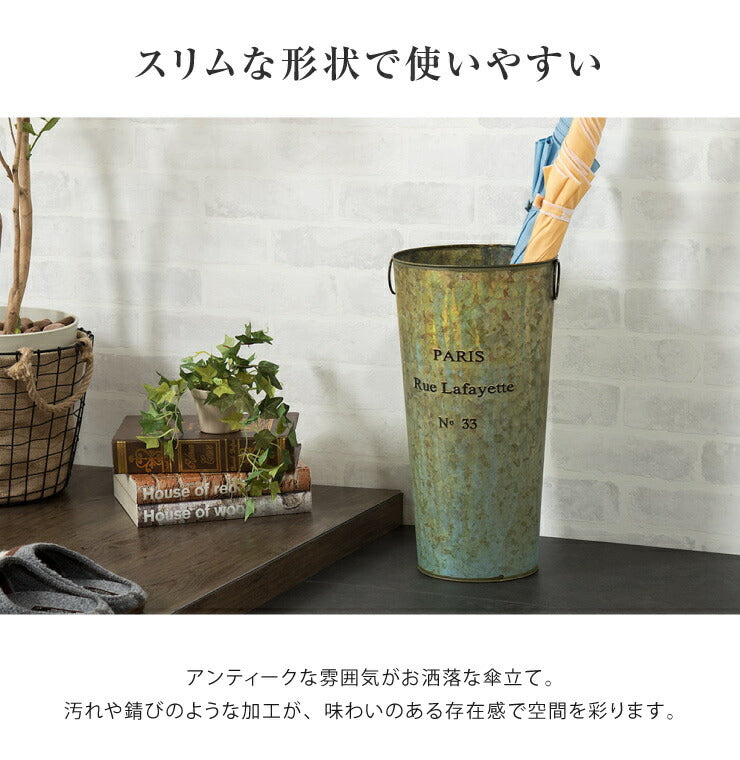 傘立て スリム 直径21cm 高さ41cm スチール グリーン アイボリー アンティーク インダストリアル シンプル ヨーロピアン 玄関 アンブレラスタンド アンブレラホルダー 玄関収納 ガーデン