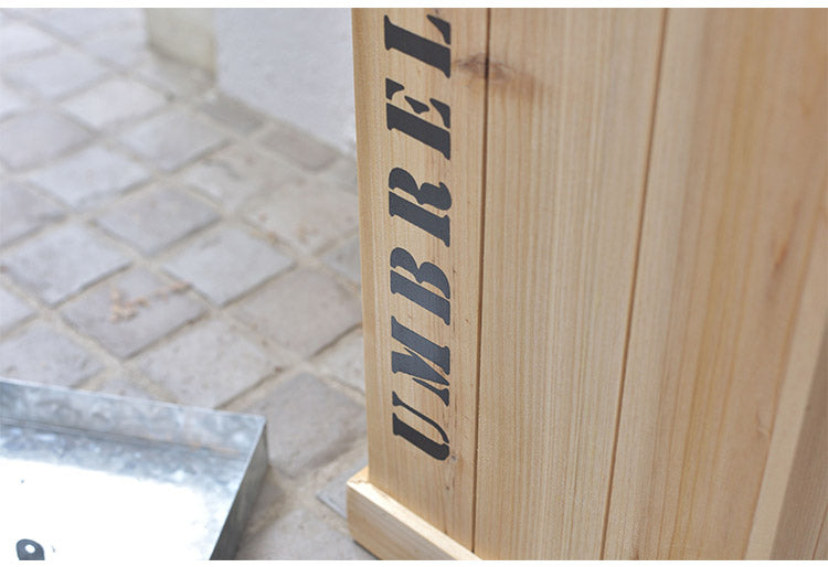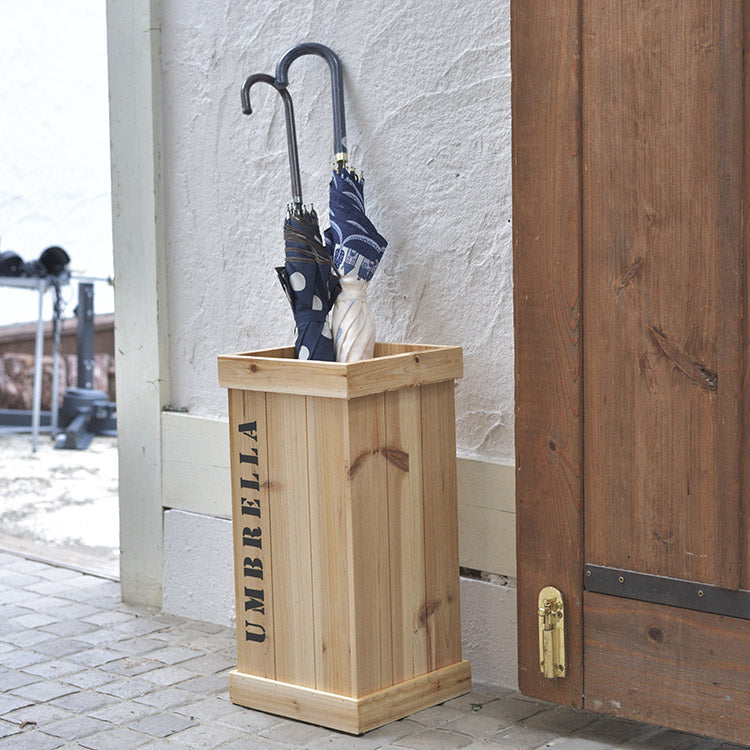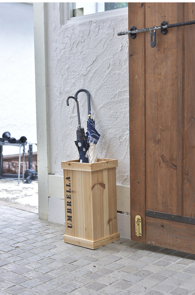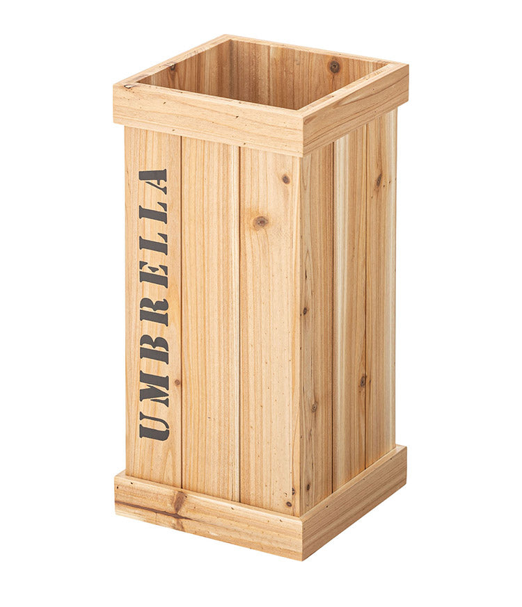 ●天然木(杉)を使用した、個性的でデザイン性のある傘立て。●底部分にはスチール製のトレーが付いているので、床へ水が染み出す事もなく安心。●トレーは取り外しが可能なのでお手入れも簡単でいつでも清潔。●木目や節など、天然木の質感が魅力的な傘立て。