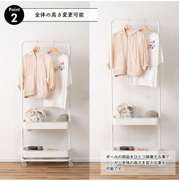 ●ポールの部品をひとつ脱着する事で、ハンガー全体の高さ調整も可能。