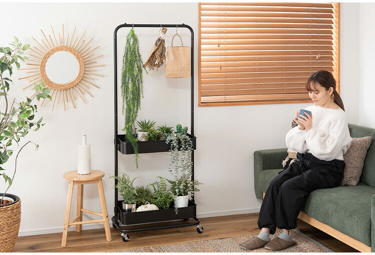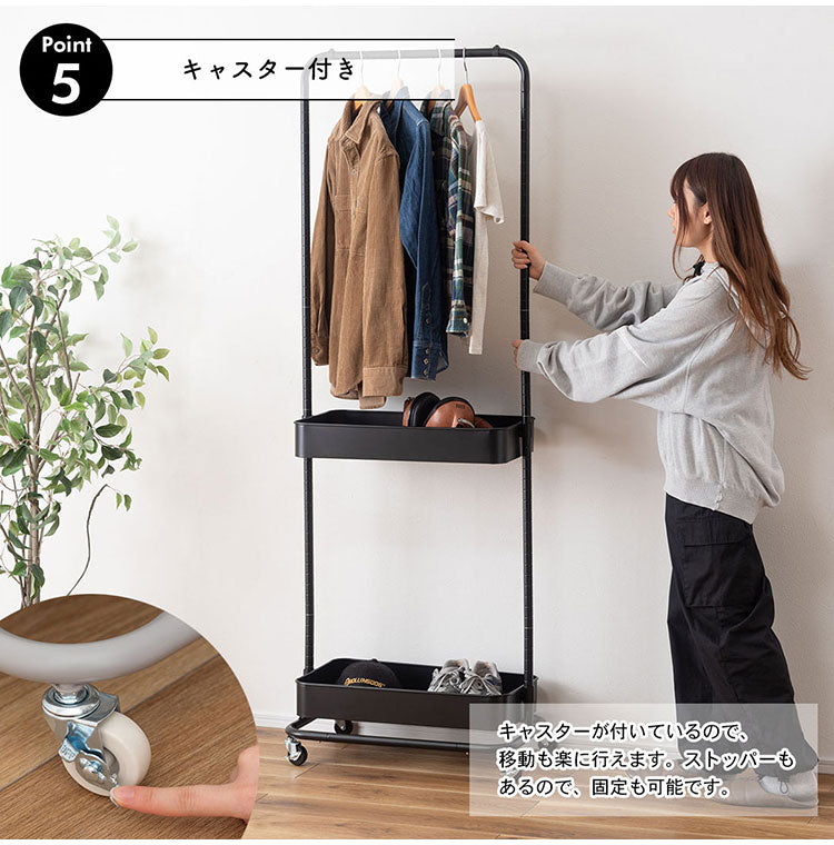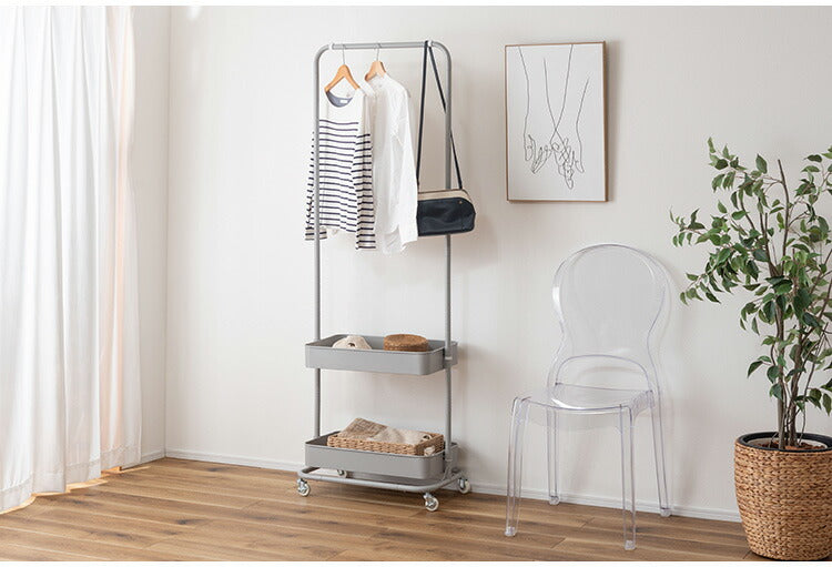 ●シンプルデザインで場所を選ばないハンガーワゴン。