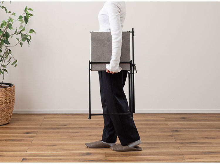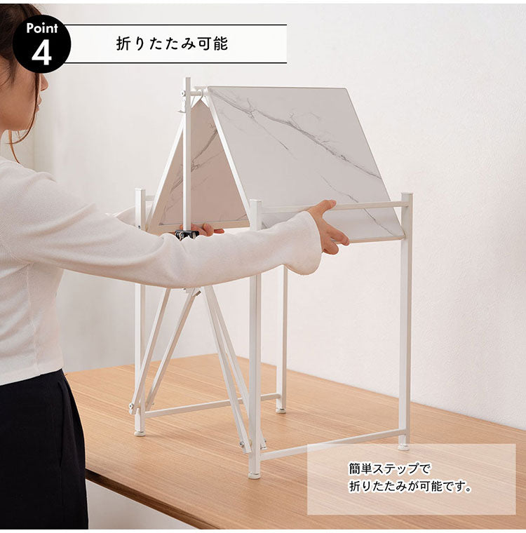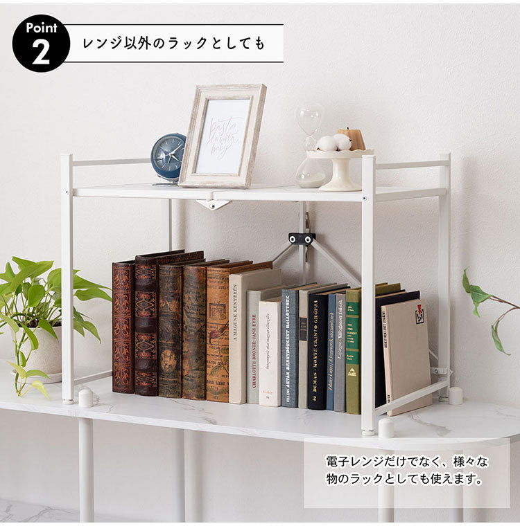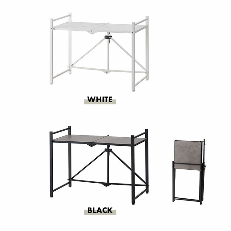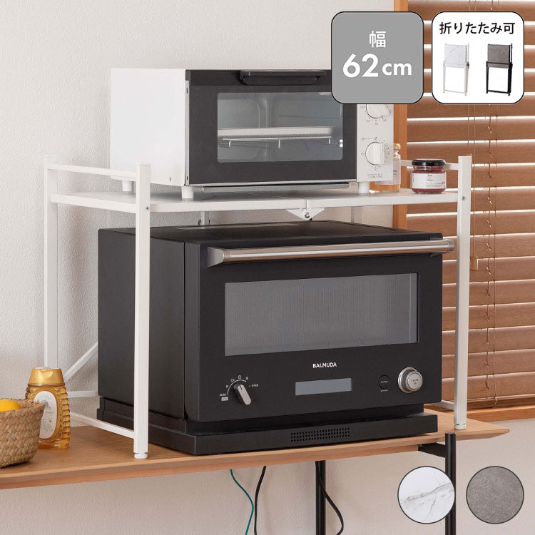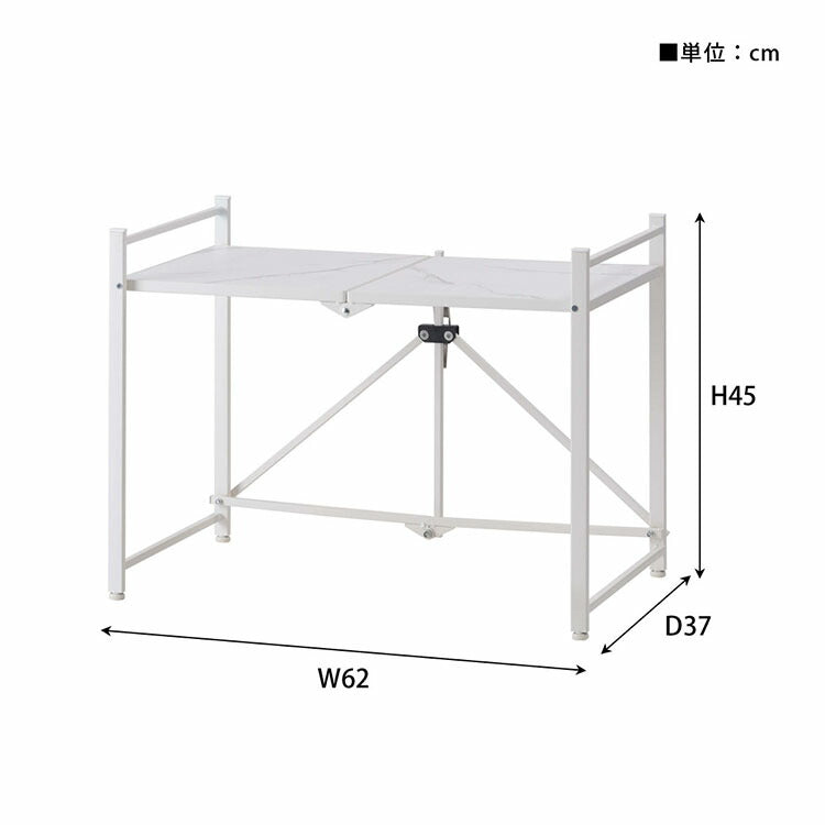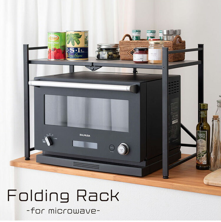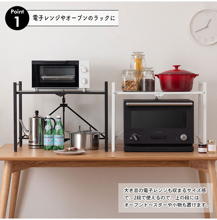 ●折りたたみ可能で、使わない時は省スペースに収納可能なレンジラック。